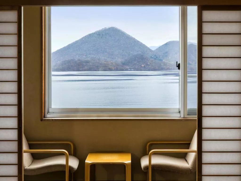 去洞爷湖泡汤更是特别,这里的山都是火山,积雪再厚,这里的湖水依旧波光粼粼,碧波荡漾。每一间温泉房都可以看到静谧的湖景。