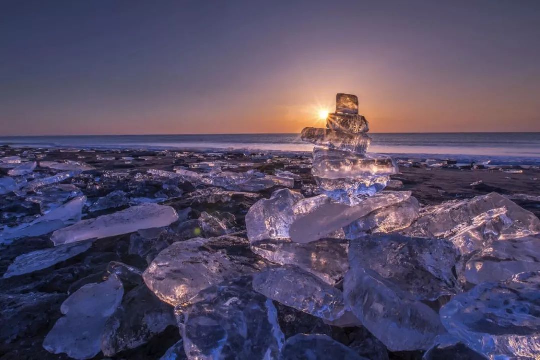 北海道十勝大津海岸的宝石冰塊,是只有冬日才能形成的奇观。宝石冰块在不同时间会显现出不同的光芒与色泽,相当梦幻。