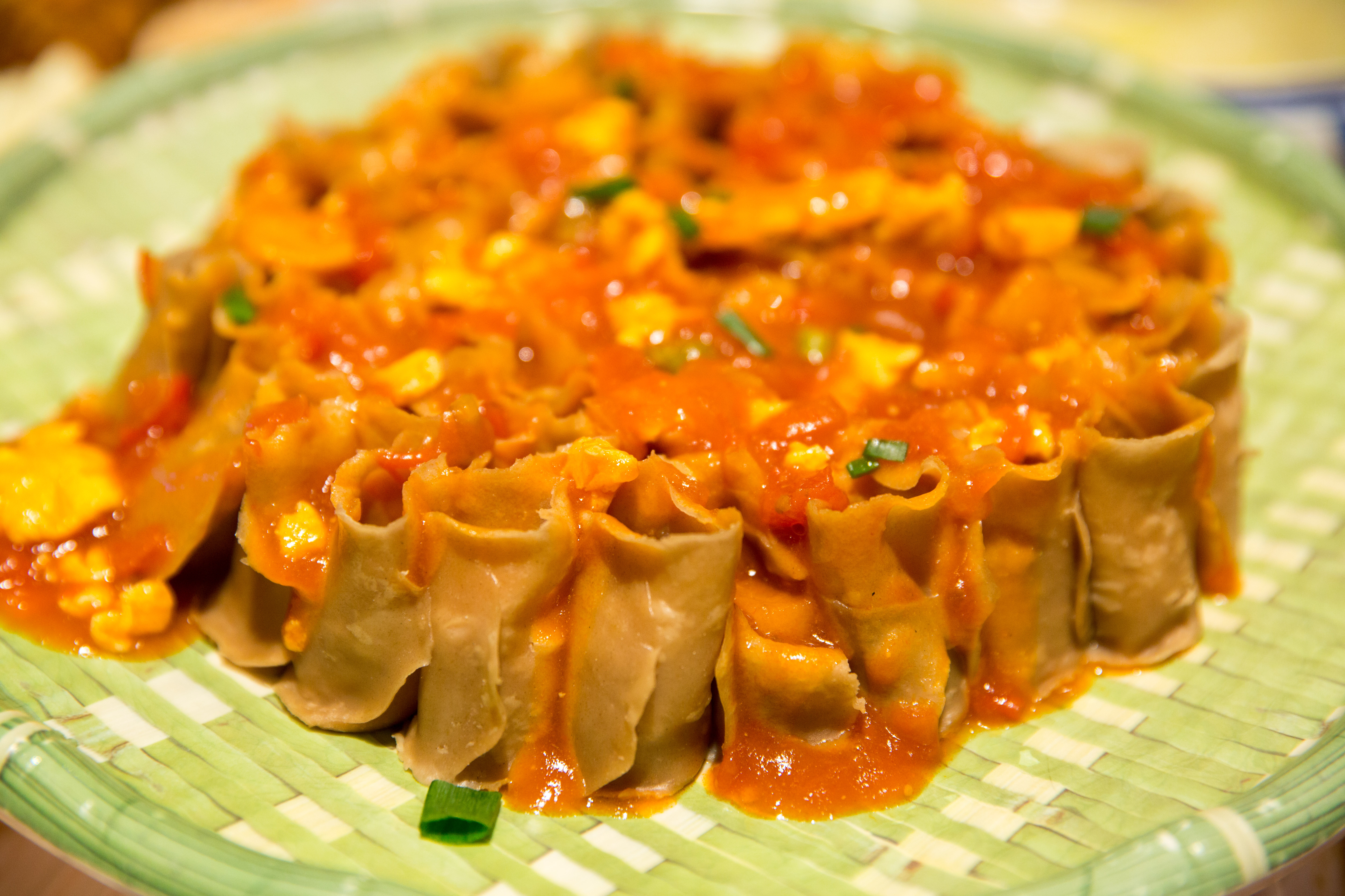 莜面栲栳栳是山西十大面食之一,和卤相配,将栳栳盛在碗里,浇入卤汁撒上香菜末即可食用。平遥古城里面也有炒的,个人觉得和炒刀削面差不多。吃不惯面食的朋友可能不太接受。