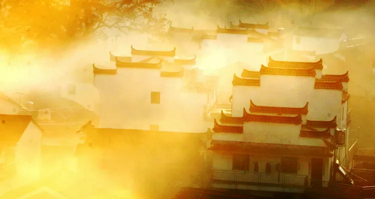 终于,阳光倾力撒下,染黄了晨雾和村庄,这种景致,我是真的拍不出来(*/∇\*)但附上张老师的大作,很遗憾我在现场也没发现竟然这么美😂