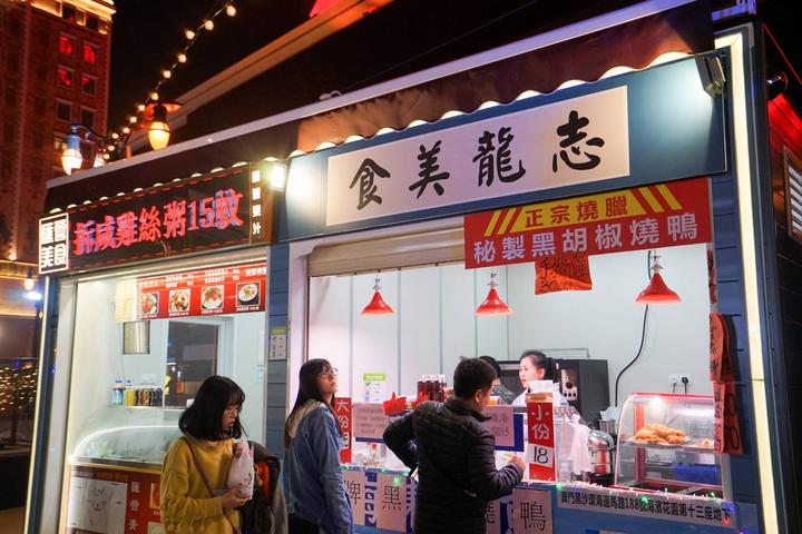 夜市里有美食区、游戏区、零售区等。葡国菜,日本料理,泰国菜,韩国烤肉,港澳台小吃,猪扒包,鱼蛋,碗仔翅,佛跳墙,奶茶,水果茶,红酒,甜品...所有食材全部是现场制作。