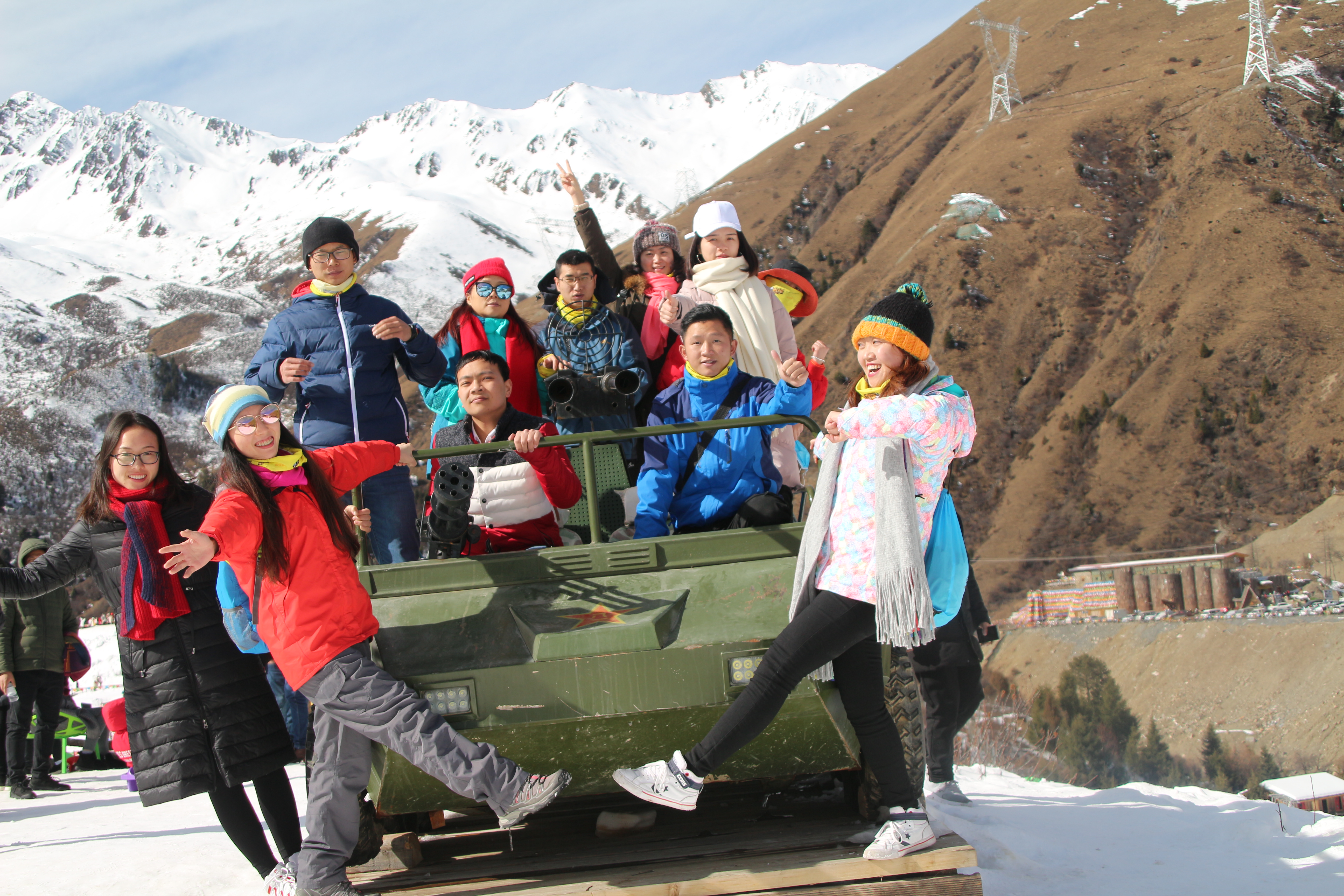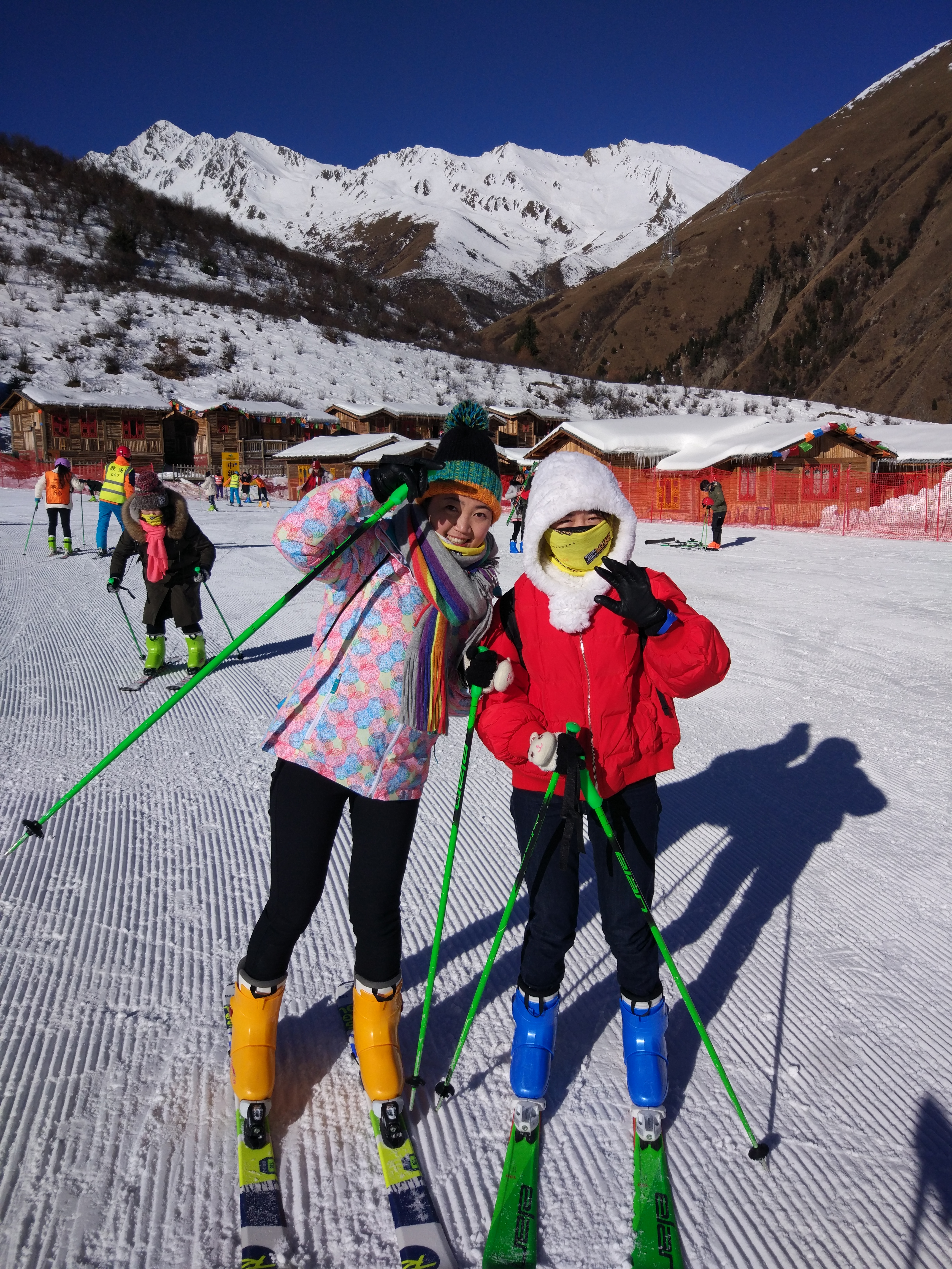 啦啦啦,好开心,第一次滑雪正式开始啦。因为来的早一些,没怎么排队,顺利的正式开始啦。领队加教练寨主,挨着给我们扣好鞋子,教我们怎么上板,还有基础动作要领。然后我们就开始满山飞啦!而我成了最速学的学员,超了几次初级道适应以后,又去中级道尝试了两次,居然没有摔倒,转弯刹车都因为轮滑功底而毫无压力,简直开心到飞起