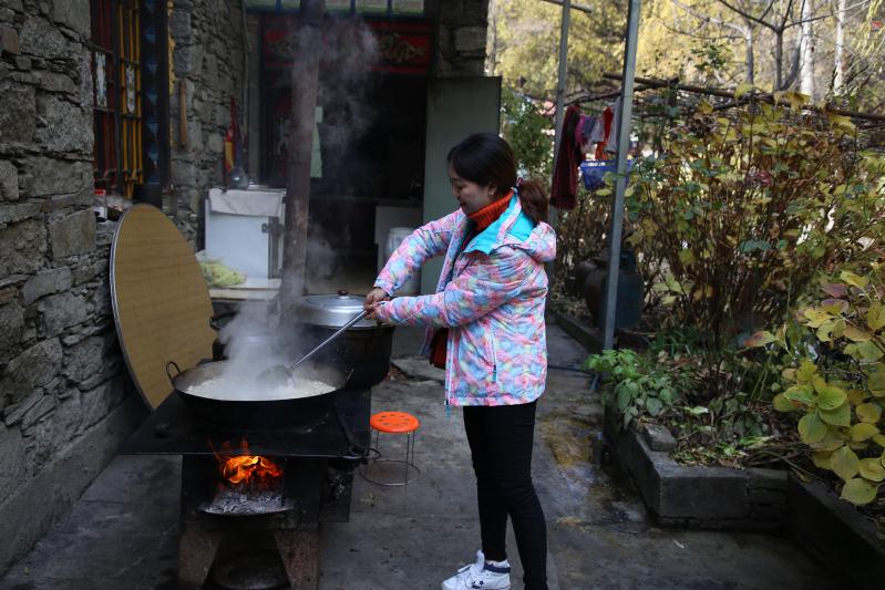 现在景区都建设的越来越好,当地的人们也过的越来越好。那为啥还有袅袅炊烟而不是用电呢?答案是:全寨停电。所以我们的午饭成了一个问题。还好我机智的去小卖铺买了泡面,又去河边一个农家乐看有个大叔在烧火煮东西,我就去要开水,本来以为会收钱的,没想到老板人特别好,特别把熬了一半的猪油拿下来免费给我们烧开水,我们十一个人的午餐就这么幸福的解决了。然后我自告奋勇,帮他们添柴熬油(虽然摆拍嫌疑很大,嘻嘻(♡˙︶˙♡))