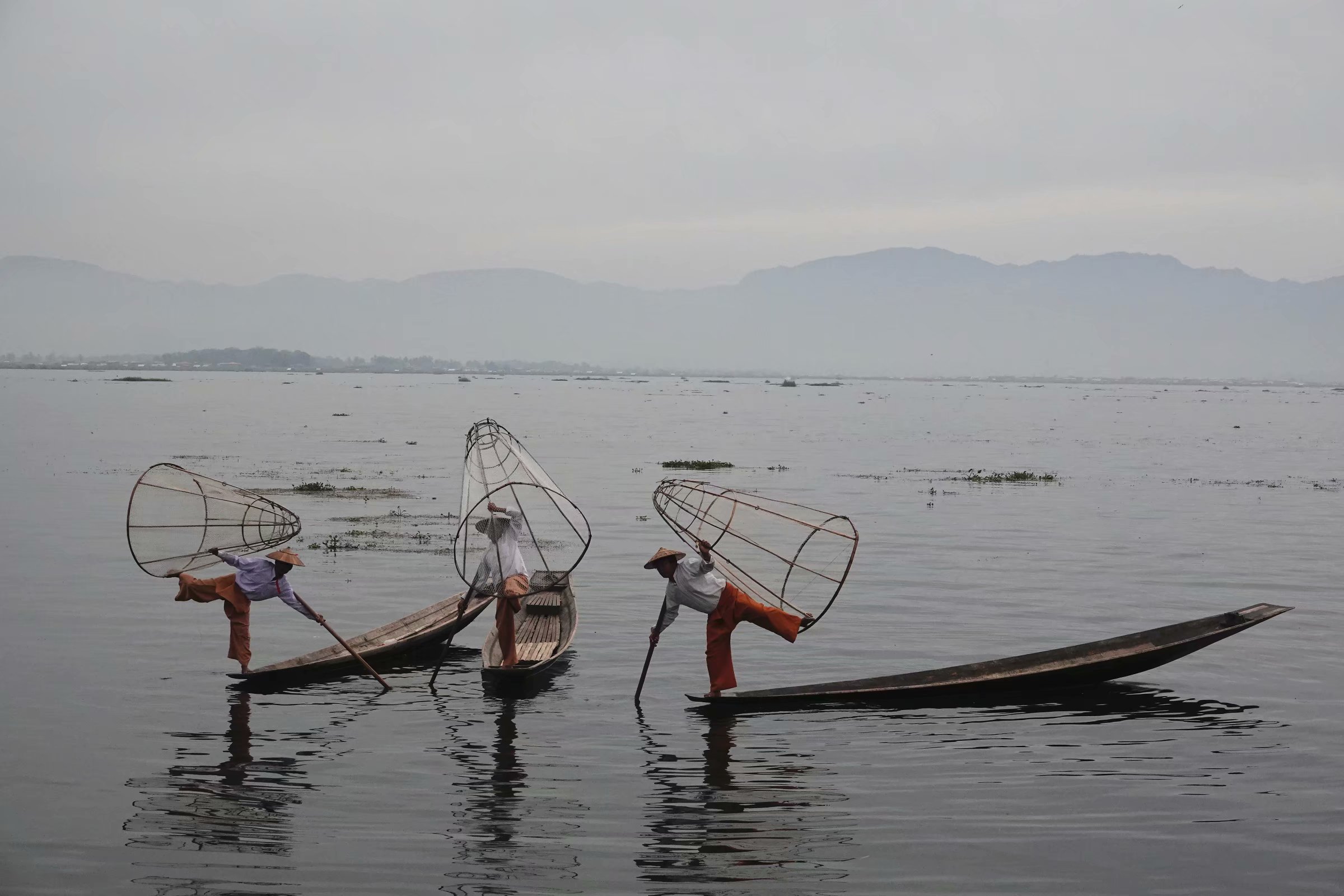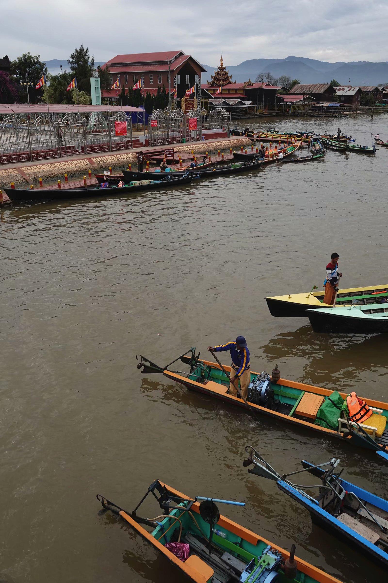 从蒲甘到娘水镇,是旅行中最漫长的车程,近黄昏,弃车乘舟于茵莱湖上,一路海鸥相伴,四十分钟的水上行程转眼就过去了。