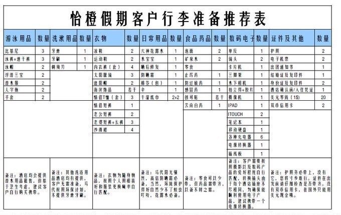 3.电子设备:手机、充电器、电源转化器、充电宝、单反、水下相机(某宝可以租)、三脚架、自拍杆……