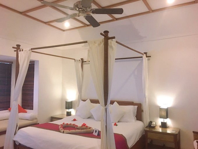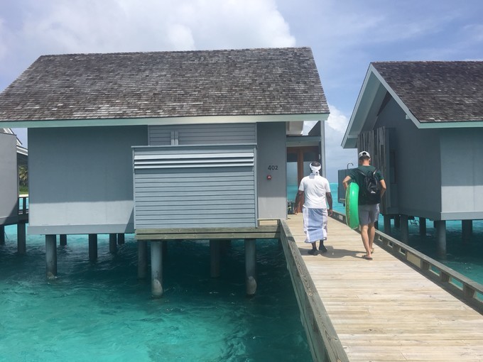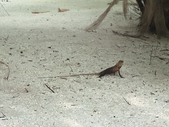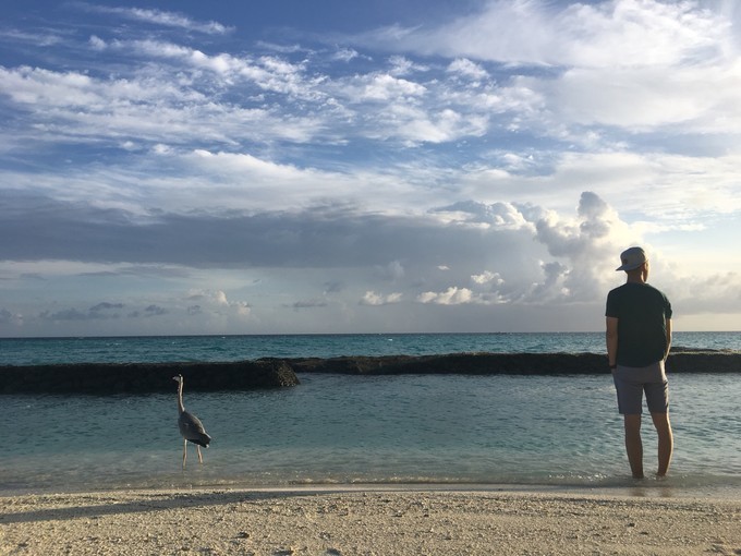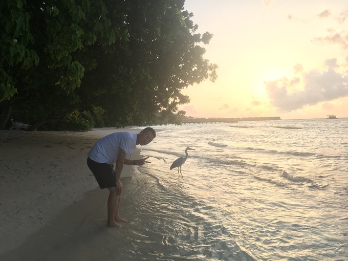 不得不说,S先生和Z小姐选的 马尔代夫 真的没有选错,首先气候宜人,海风吹的很凉快,真的一点也不热;海是没得说的,非常蓝,沙子很细,在沙滩上行走,不用穿鞋;还有库拉玛蒂的环保也很好,上面的动植物种类很多,动物就有蜥蜴、鲨鱼、寄居蟹、果蝙蝠、苍鹭……最后岛上小黑的服务真的是做到了极致,一天可以帮忙打扫三次房间,并且补充mini bar的水(因为他们是一价全包,所以房间里的有些水是可以随便喝的。)S先生和Z小姐离岛那天有个小盒子遗落在房间了,小黑直接徒手去翻垃圾袋,帮S先生和Z小姐找到了