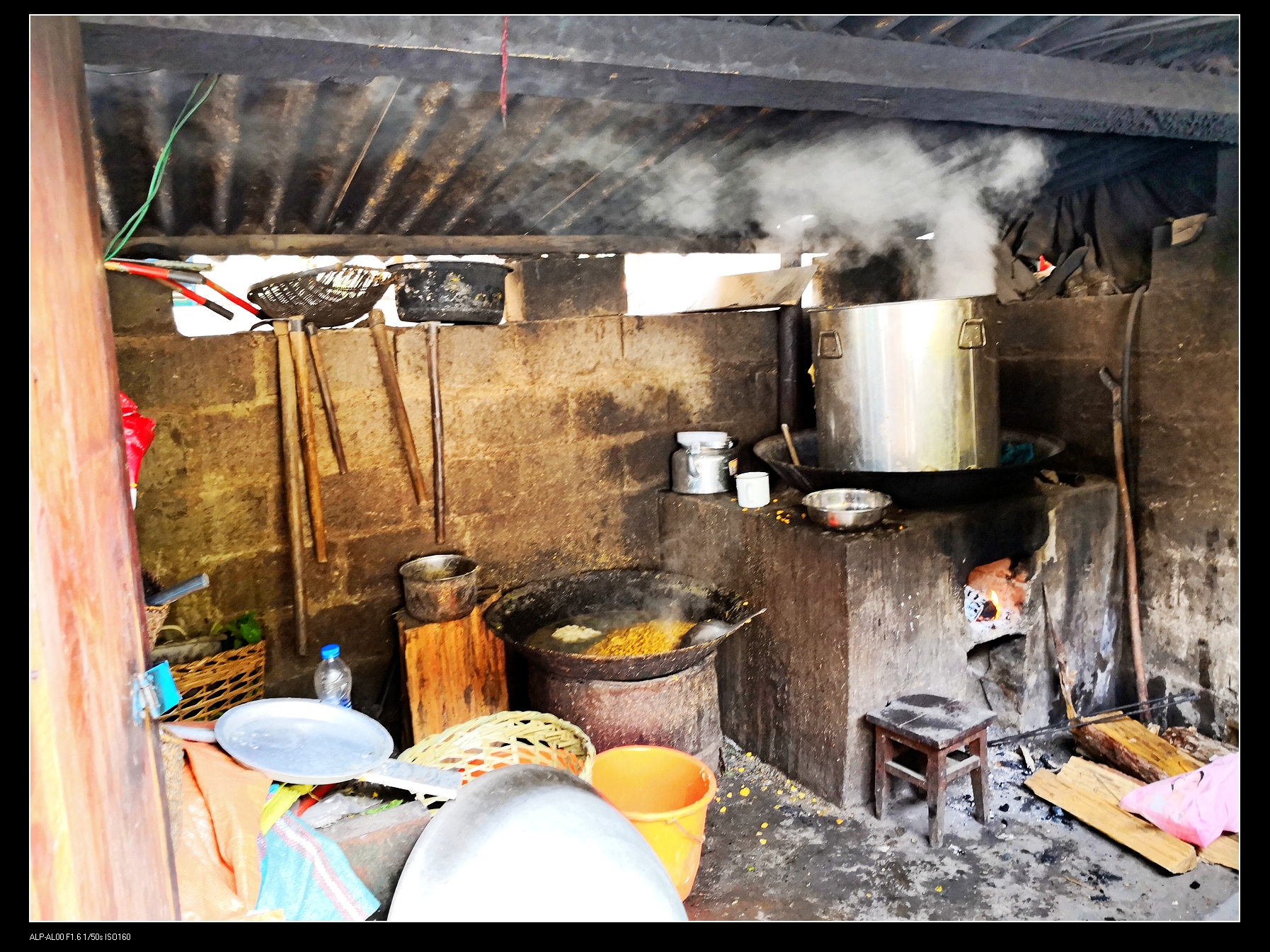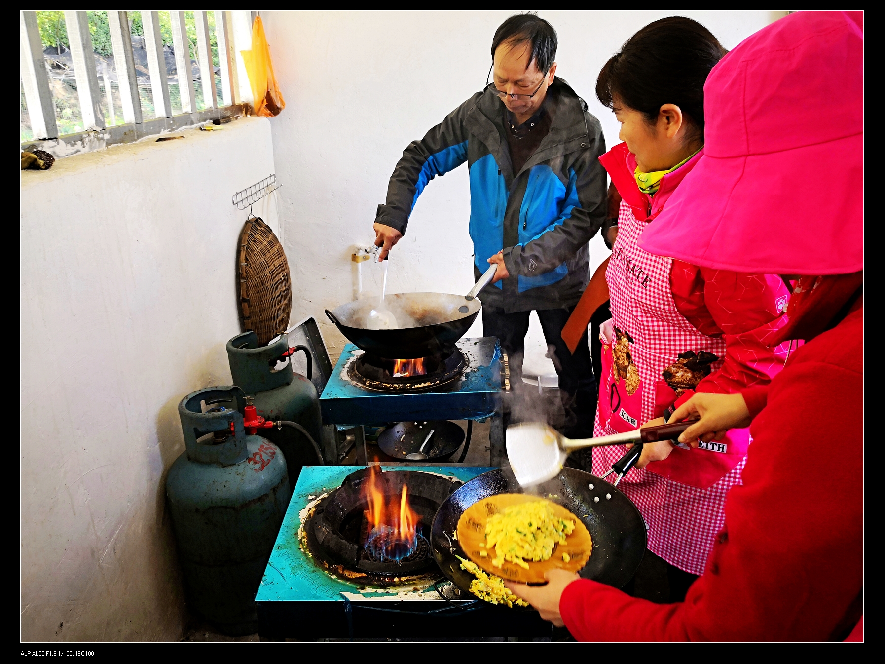 第二天一早7:00领队带我们去拍摄日出,然后回来收拾行李集中放置,再带大家到银杏村里拍摄也叫”扫村”,扫村时我们进入一个建筑有特色的小院,约瑟夫还拿烟饼制造烟雾让大家拍摄,扫完村我们在一家叫”极边教师之家”的客栈吃的午饭,有12个菜,尤其是那个土鸡和山药味道很好,饭菜总的来说味道不错,吃完午饭我们拉着行李,来到村子的等车点,将行李装车,再开车到和顺古镇,再将部分行李留车上,带需要用的物品到和顺古镇,先办理入住和顺四季客栈。