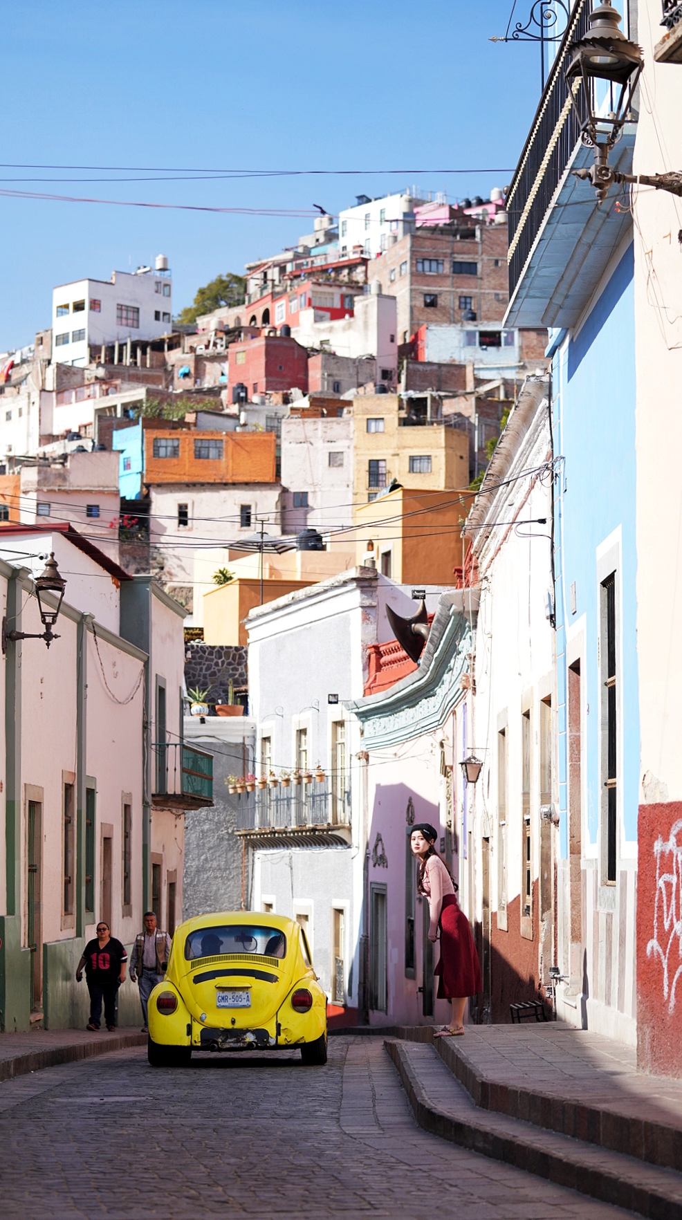 在瓜纳华托,我们用了一整天的时间走街串巷:色彩斑斓的房子、复古甲壳虫、坐在路边晒太阳的老人、广场上喂鸽子的孩子、拿着咖啡走过的金发少年、飘荡在空中的纸花……都成了我们镜头下最美丽的光影,当然也少不了接吻巷里的中国少男少女。