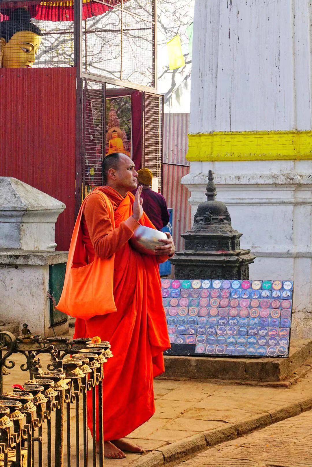 猴庙我们去得早,没什么人,反而看到了很多上学途中的学生。听说在尼泊尔,他们的上学和上班时间是早上10点,而下班时间是下午5点,再想想中国,我们的工作时间可够长的~