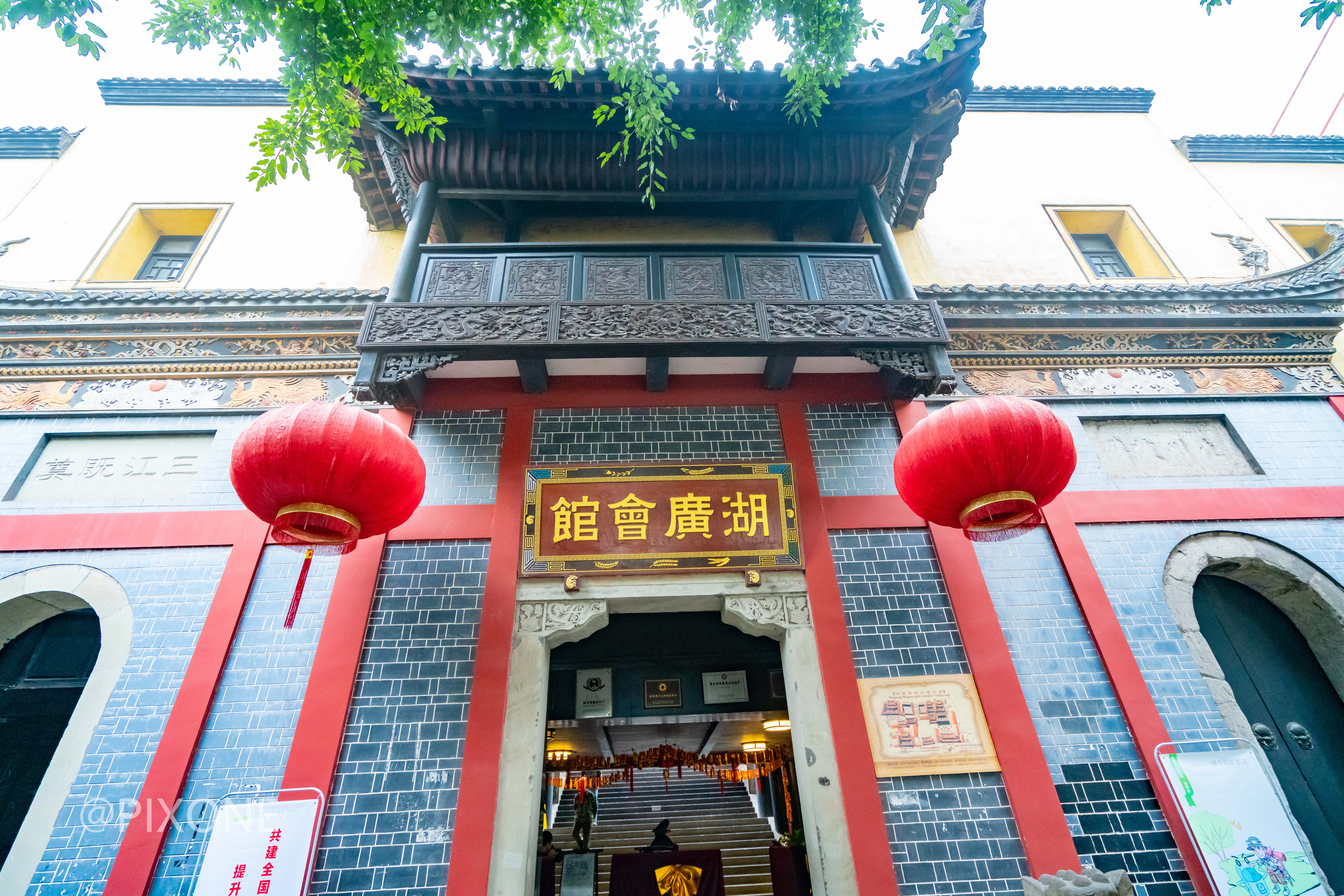 湖广会馆建筑中的浮雕镂雕十分精湛,特别是在禹王宫、广东公所和齐安公所内的戏楼中,题材主要为西游记、西厢记、封神榜和二十四孝等人物故事的图案,每个故事旁边都刻有寓意福气的蝙蝠、花草、瑞兽等。