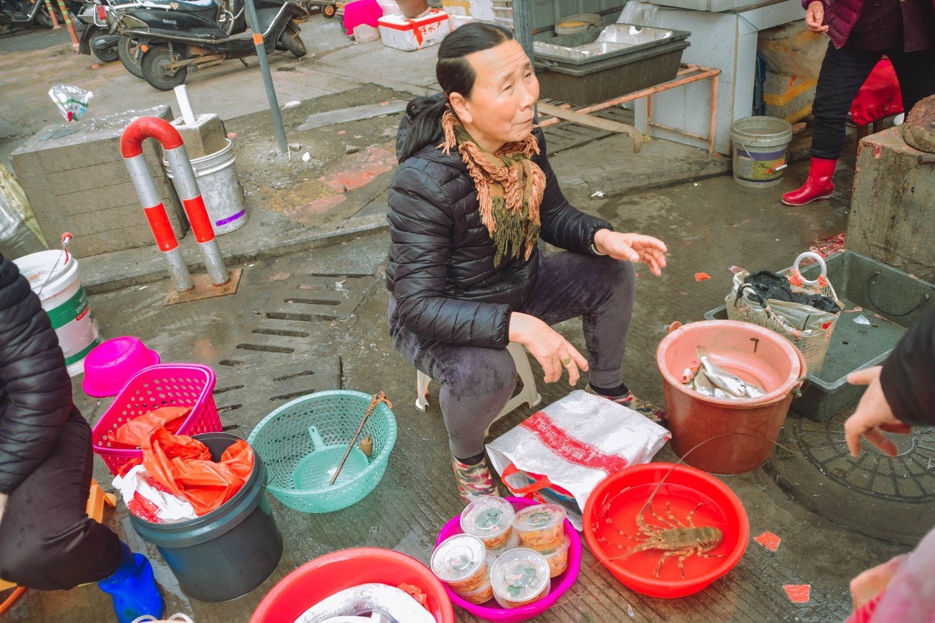 各种时令蔬菜和海鲜,很有意思的是这个卖大龙虾的阿嬷,问她多少钱一斤,她回答“250元!”暗戳戳的笑了