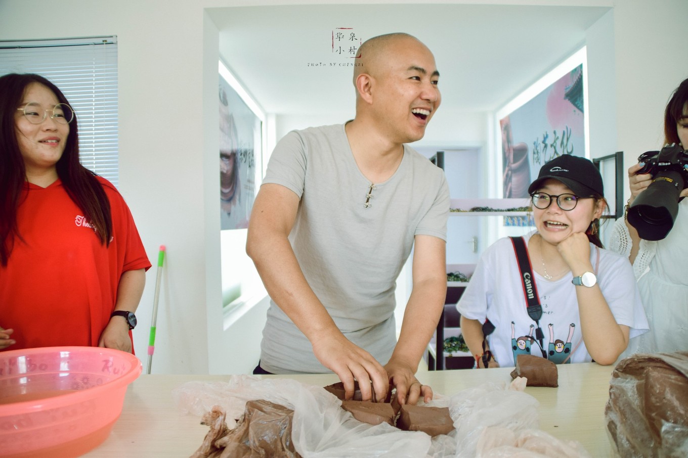第一次做陶艺,有种打太极的感觉,不能轻也不宜重。第一下试的时候还是失败了,在又一次的摸索下,渐入佳境,做出来还是挺像模像样的嘛!初尝试陶艺,看来我真的是艺术家,自我很满意。