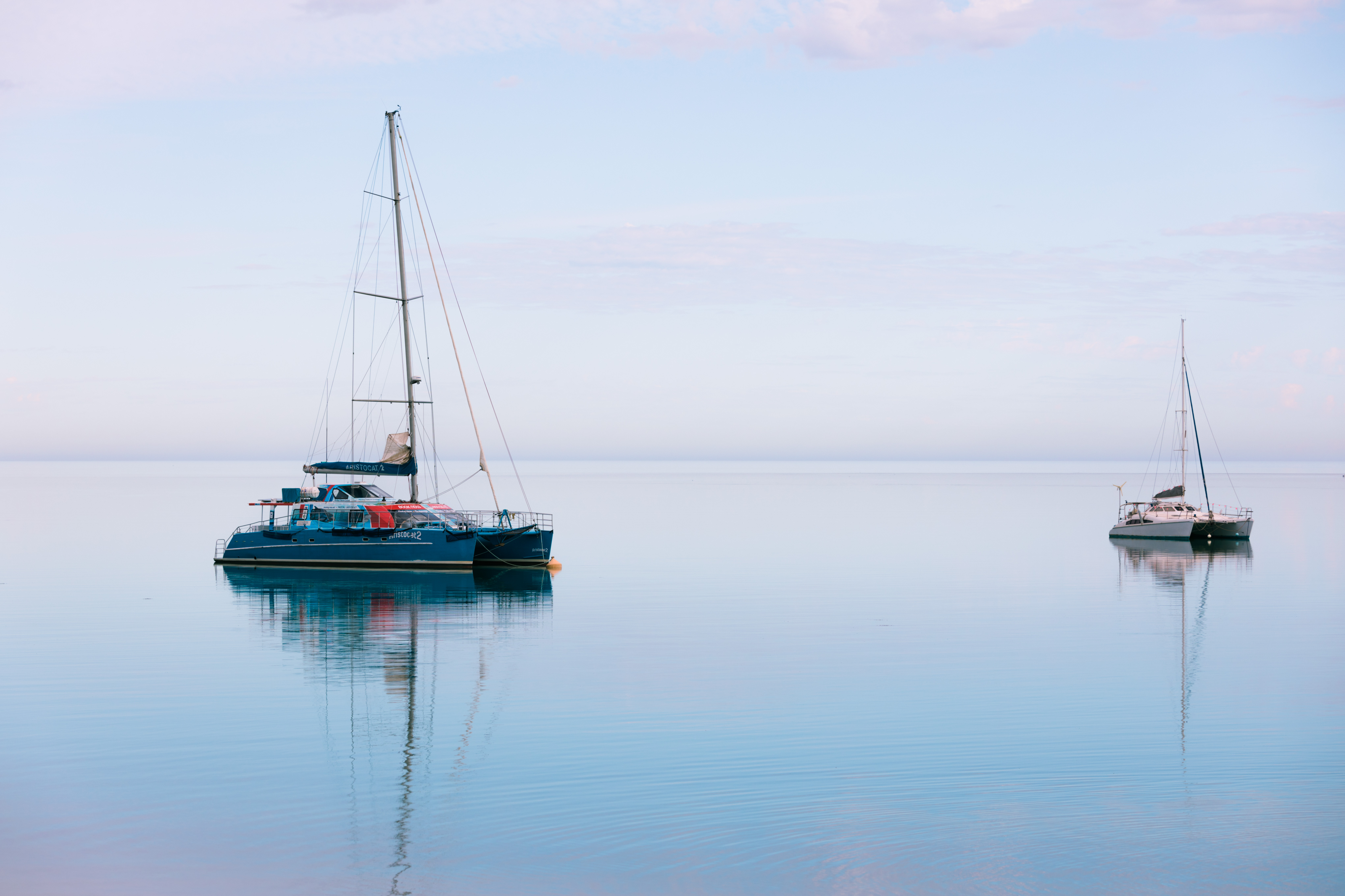 西澳的一天之后,色彩总是在不断变化的,而清晨的西澳属于平静的蓝色调,当你看到一艘深蓝色的渔船安静地停泊在浅青色的海面上,天空中的云朵和海中的倒影还泛着朝霞带来的一点点紫红,你只会想躺在沙滩上去伸一个大大的懒腰。