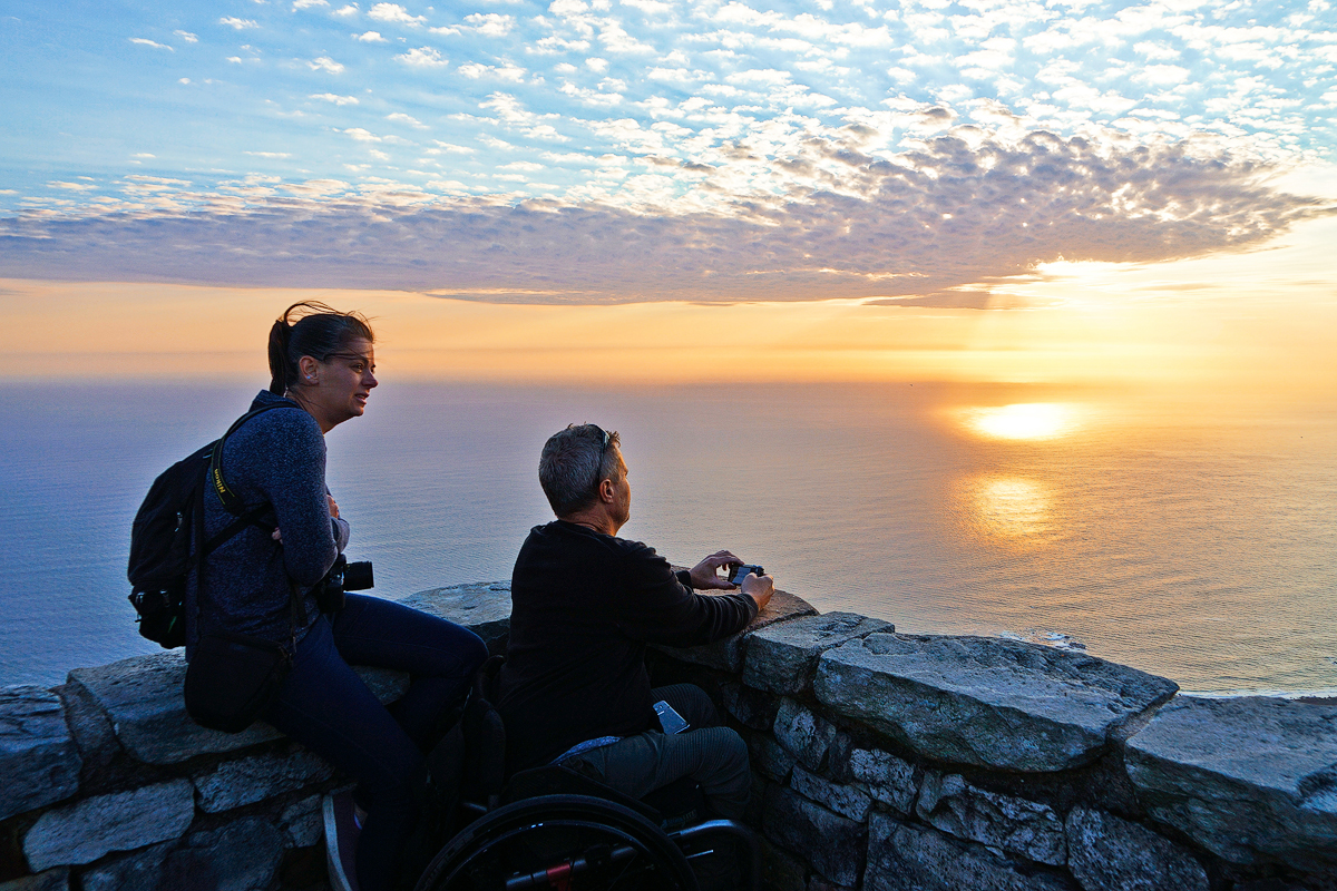 登顶桌山,周围的风景尽收眼底,一边是一望无际的大西洋与天空仿佛连在了一起,看不到尽头。