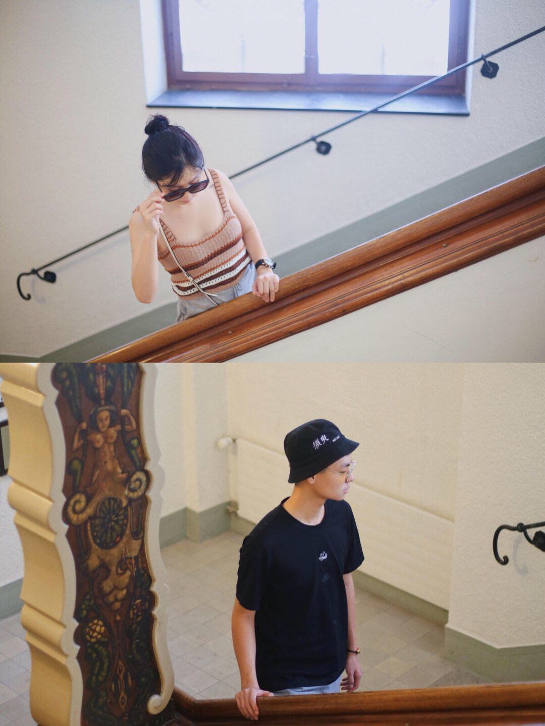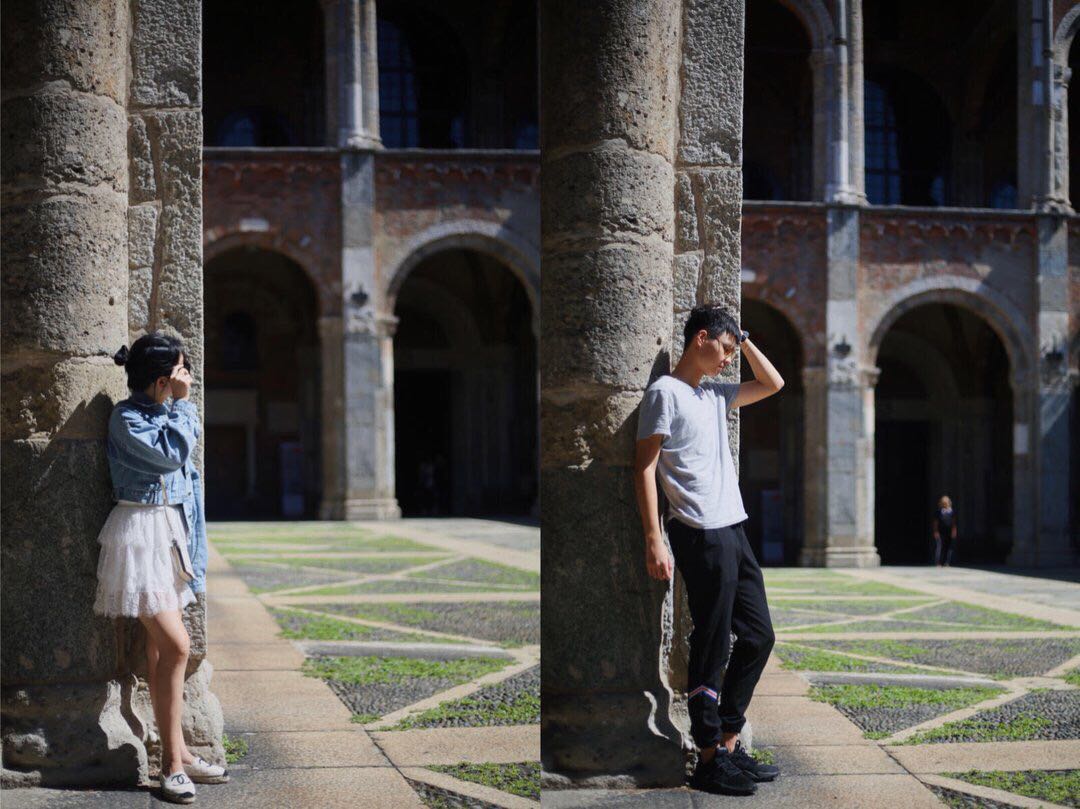 哥哥总结了下妹妹拍照的套路,要不是靠栏杆,要不就是像此图在大柱子旁。