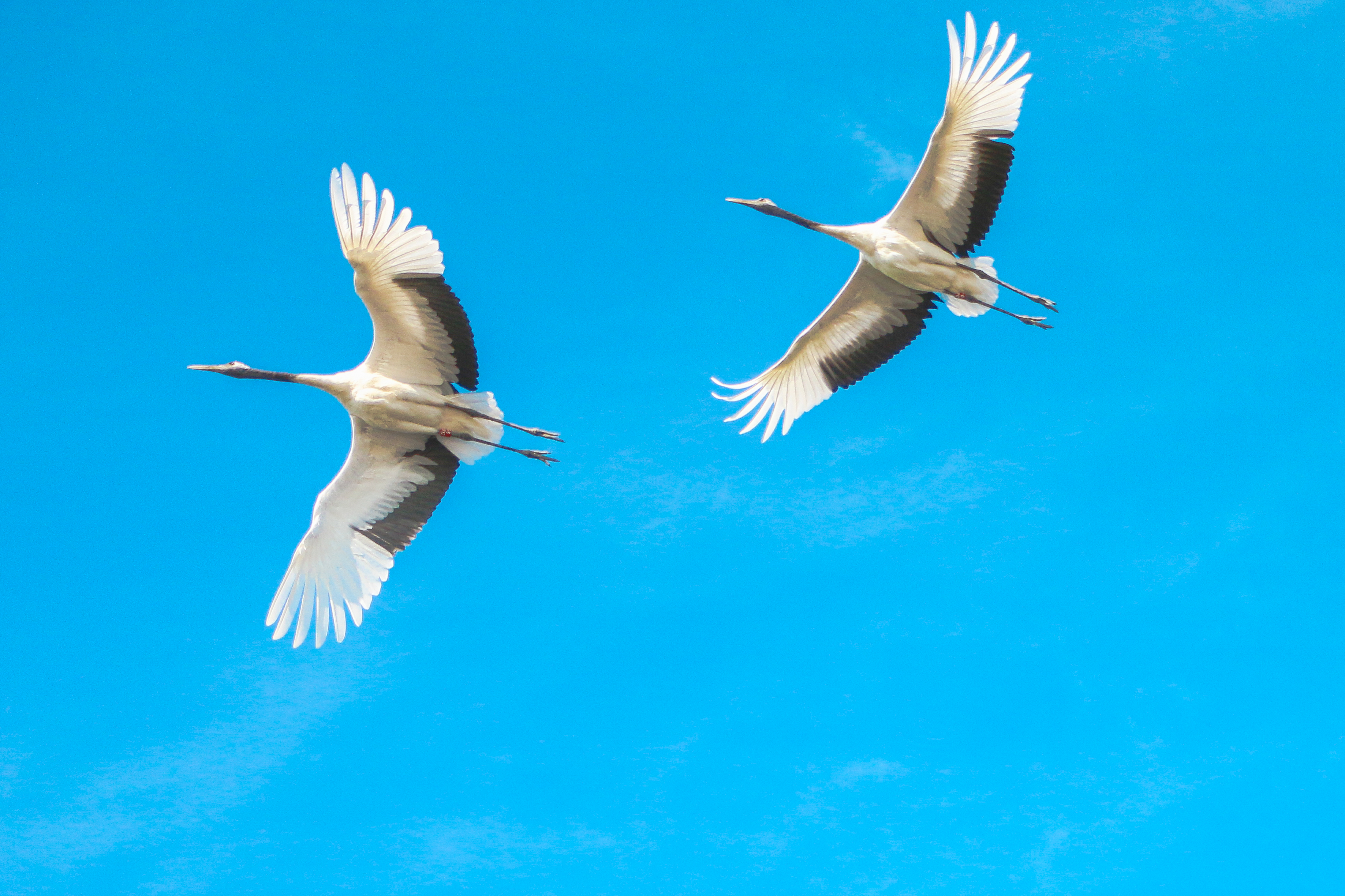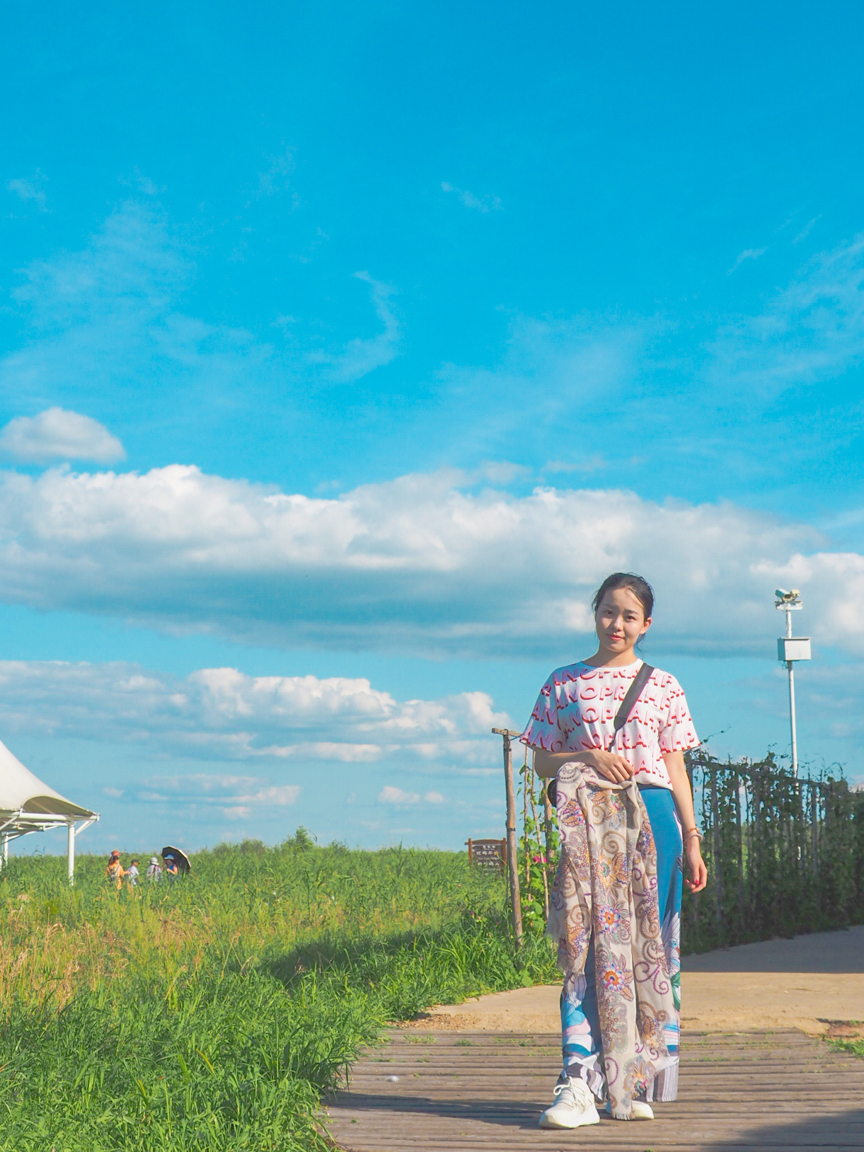 想要化作的闲云野鹤,既能翱翔蓝天又能留在天际。这儿的云朵和别处的不一样,消失在和地平线一样的尽头,丹顶鹤在湿地间游走,人在栈道上行走,似乎大家都很气定神闲。
