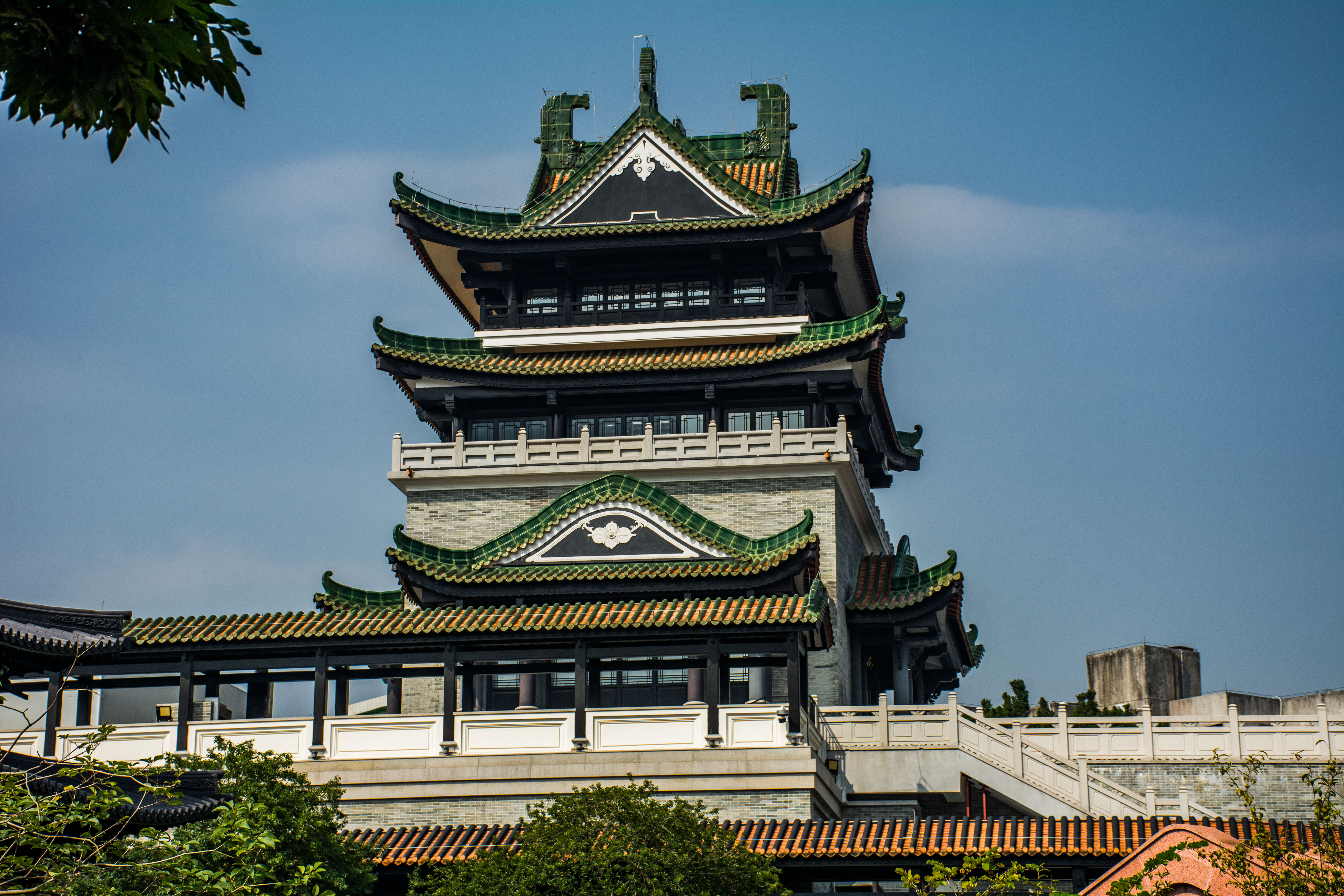 向北走过一段泮塘路,左拐就是西关大屋了。这是陈廉仲的故居。我们从大屋侧边的小巷子走进去,这是旧时西关小姐出门走的路。西关大屋为富商所建,连下水道都是铜币的形状,里面更是气派规整。正厅是缩小版的三进,正厅前近天井上方前有一用木版拉花秀雕而成的花罩,把大厅和天井分隔开;而正厅上方,还搭建有神楼,用于供奉祖先;正厅后面用屏门围隔成头房,是家中最老的长辈居住之处。