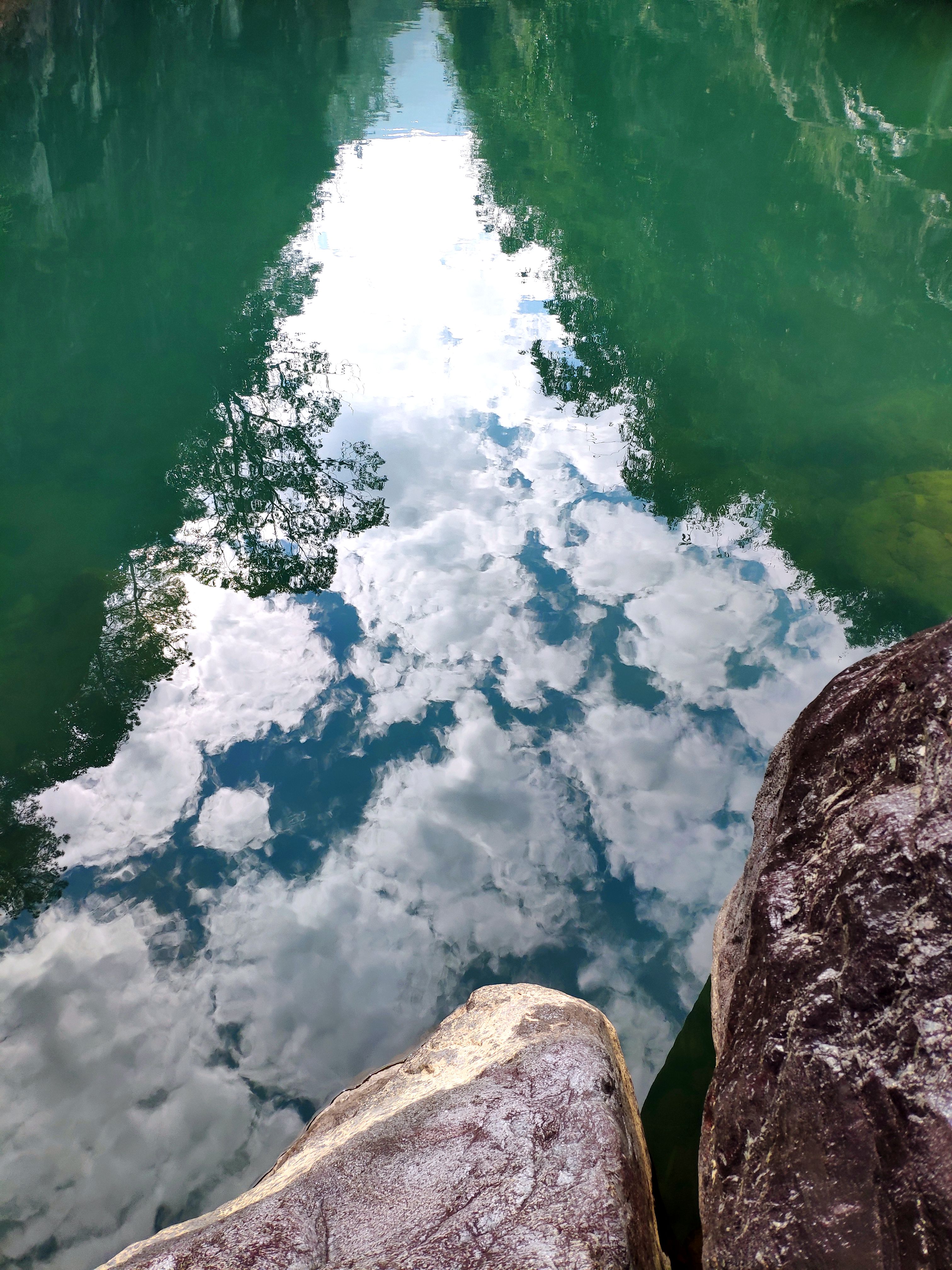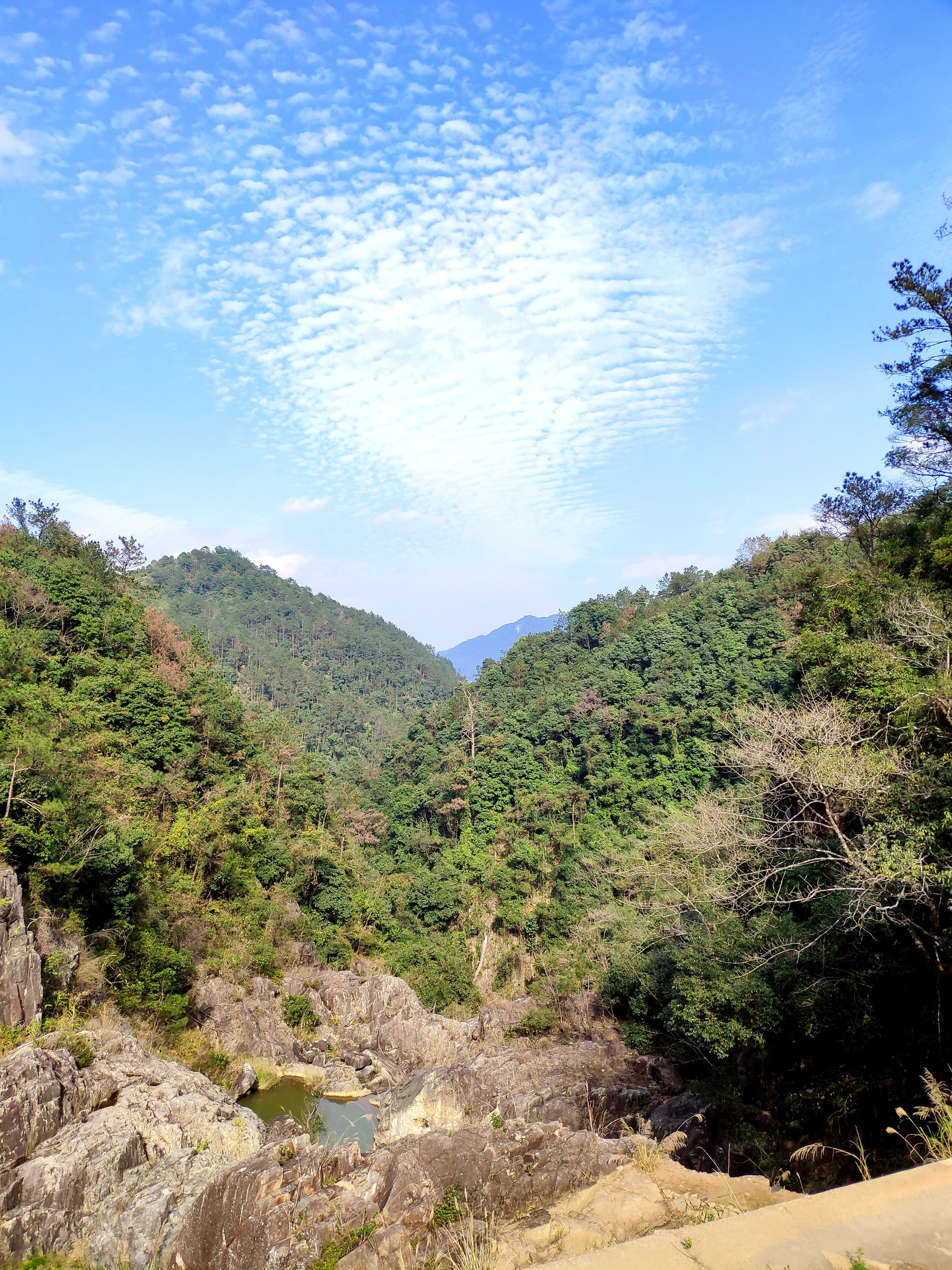 进入山谷,地势较缓,溪水慢流,拍不完的青山绿水和蓝天白云。