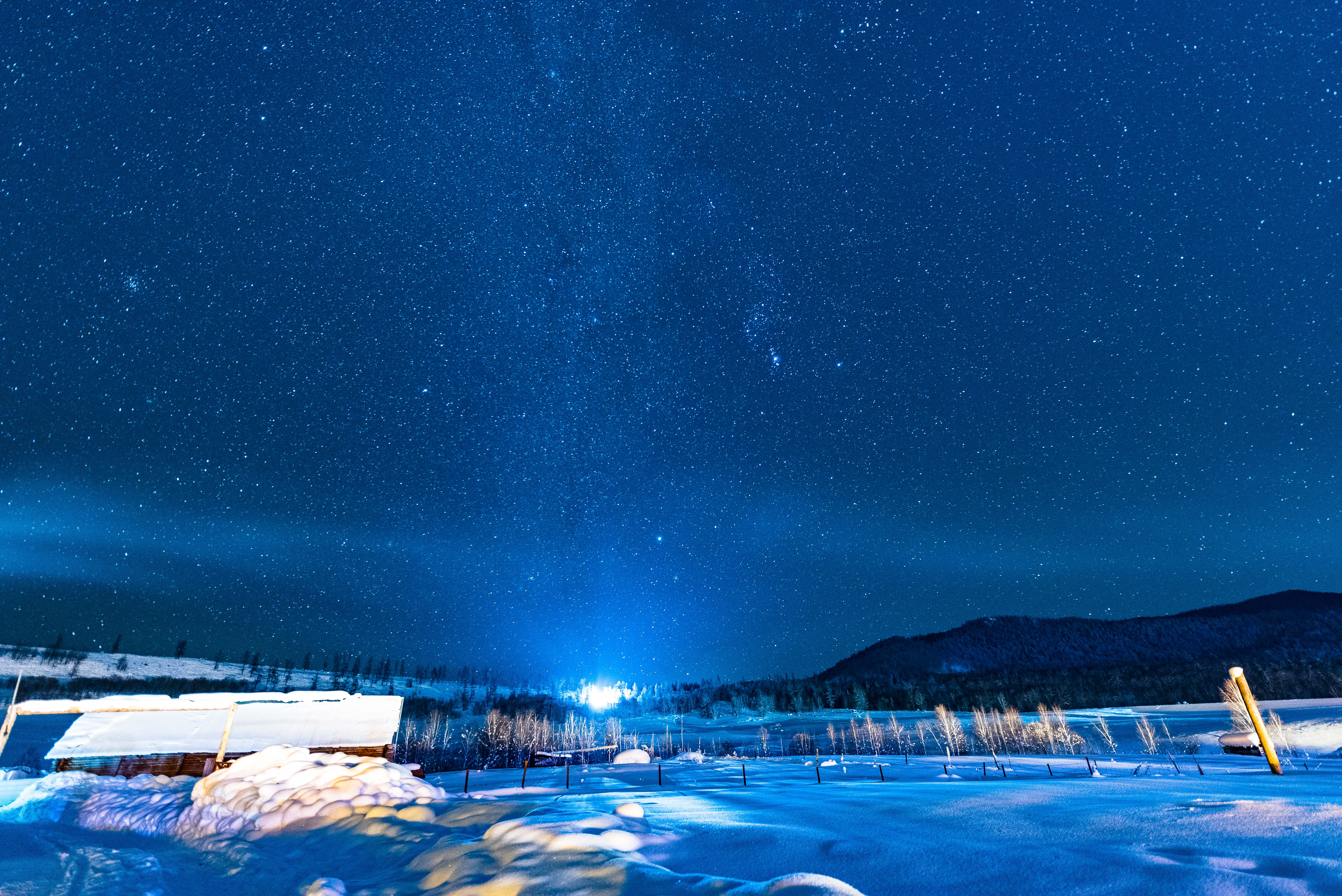 虽然不是第一次在 禾木 拍星空,但是依然被这里的夜晚震撼了。除了眼前的美景,还有冬季可怕的低温天气。想着天气寒冷,也没有提前踩点,就在酒店附近的小山坡上拍就算了。虽然有点灯光污染,但效果还是可以接受的。