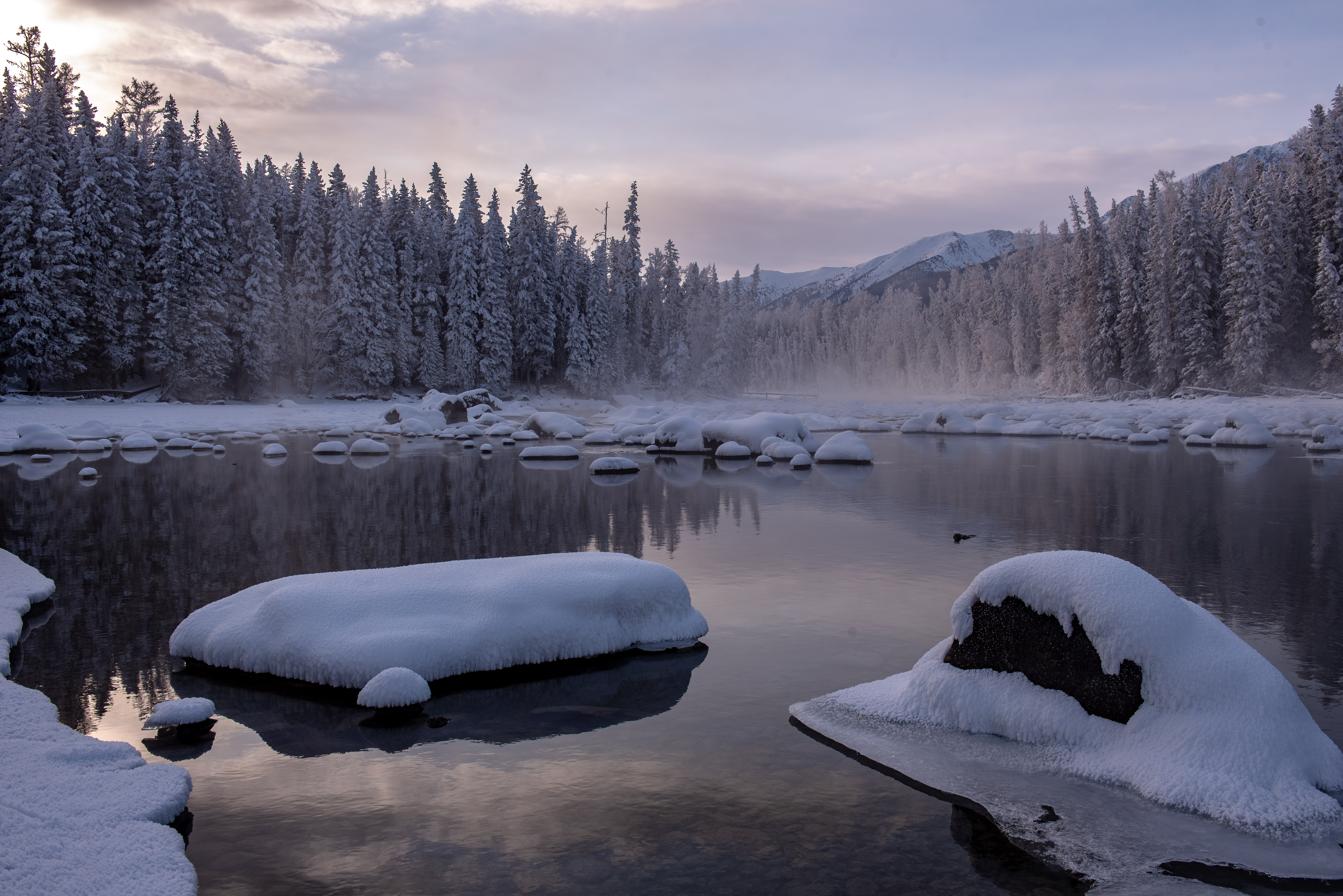 据说冬季的喀纳斯是迥异于秋天的热闹非凡的场面,零下三四十摄氏度的气温让这里重新变成了一片净土。甚至那些外来的客栈老板都下山过冬去了,只有一些本地图瓦人还在大山里过着原本属于他们的生活。冬季的 喀纳斯 就像一幅幅水墨丹青般,恬静却有深意。我决定要去喀纳斯寻找我梦中的冰雪童话世界。