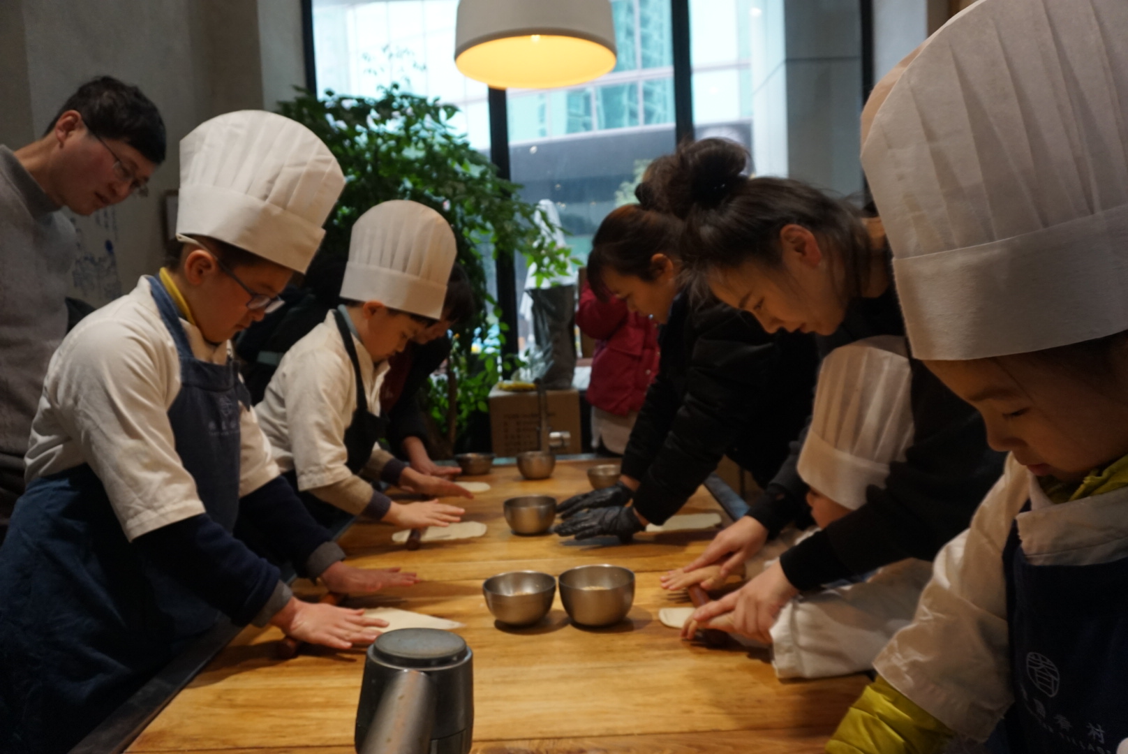 指导老师先给我们换好上专业的工作服。