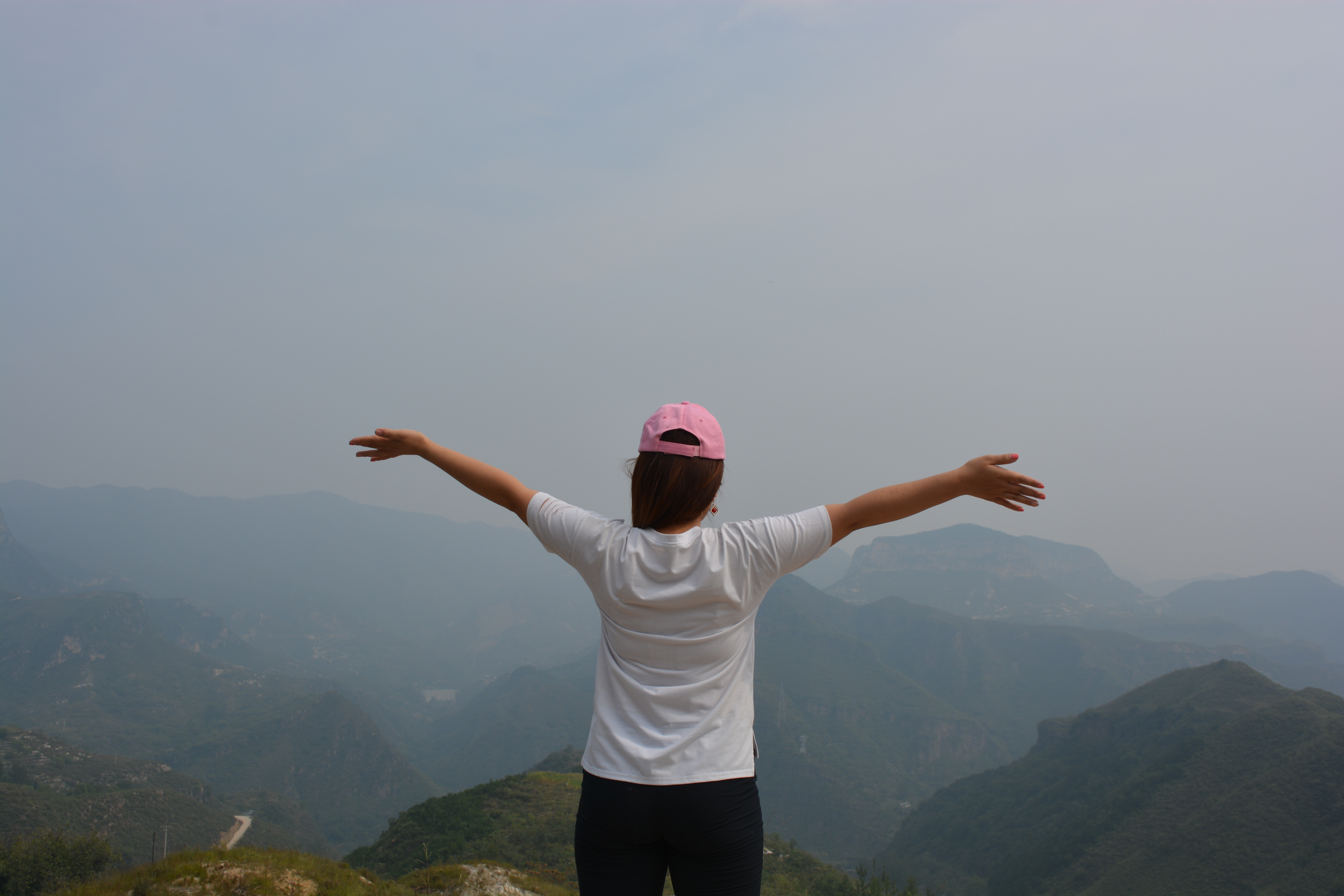 稍作休息之后,我们一气呵成到达最高点,坐在山顶,吹着风,吃着自备的粮食,大家互相分享,感受到家的温馨。向山下看去便是最美的红井路,盘旋的山路是那么壮丽,可以想象当时修路时的艰难。劳动人名的力量是伟大的。少年你是在思考那山道是怎么修成的吧?