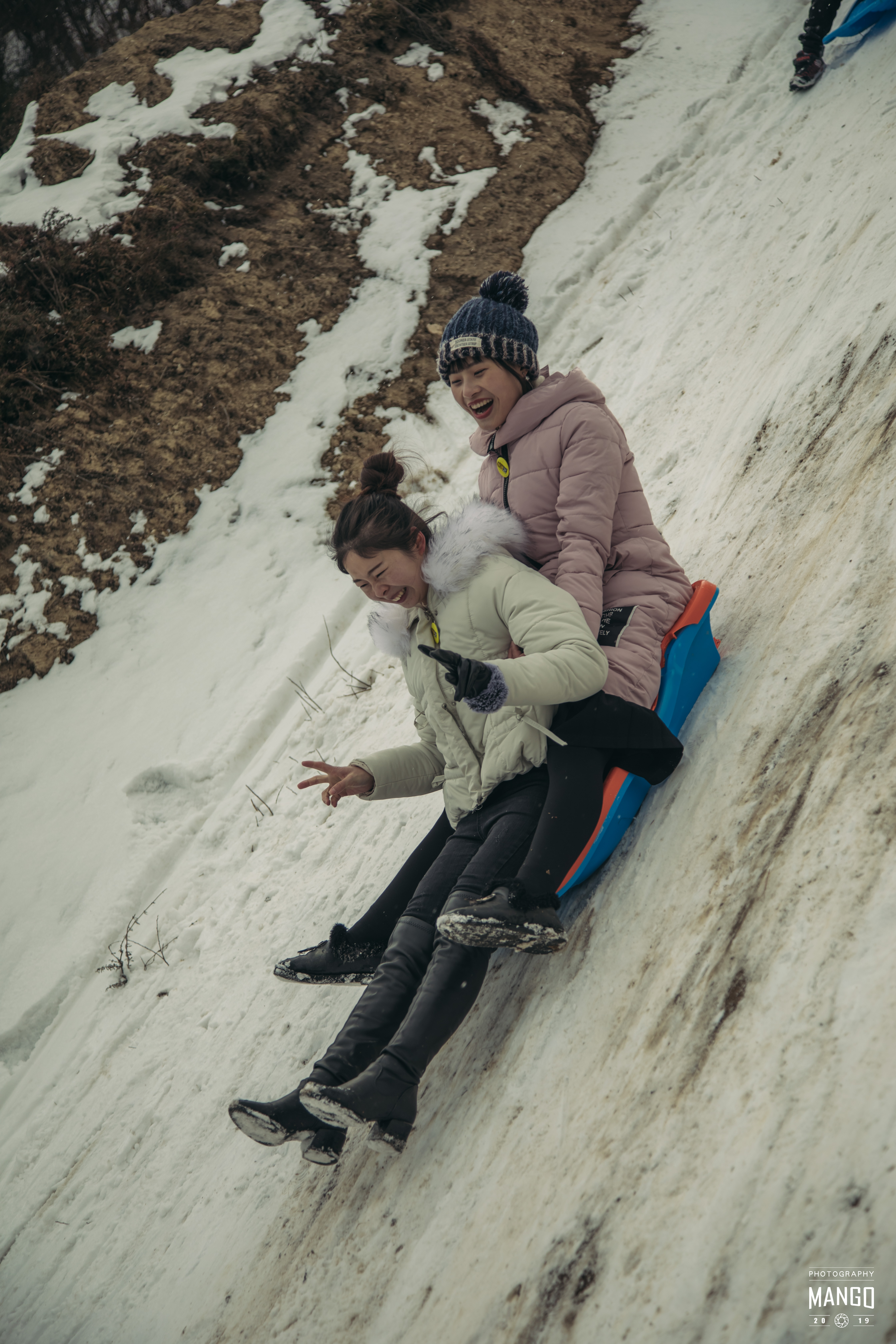 小伙伴们玩的最嗨的就是今天的滑雪项目,玲珑潭附近有一条500米左右的滑雪道,老板还为我们提供了简单的滑雪道具。