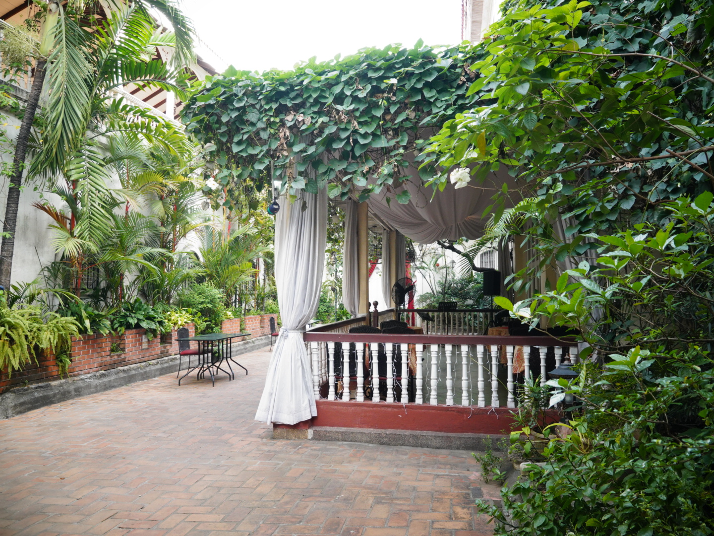 住在市中心王城区Intramuros,白骑士酒店,一个castle式的酒店,周围一圈墙很厚的房子,中间院子有水井。三楼房间的阳台要蹲着才能向外看,像守卫向外射击的设计。房间较大,一个大床上面还有挂顶的蚊帐,有点贵族房间意思。酒店对外可以接受拍照,有旧时风格,晚上吃饭排队。