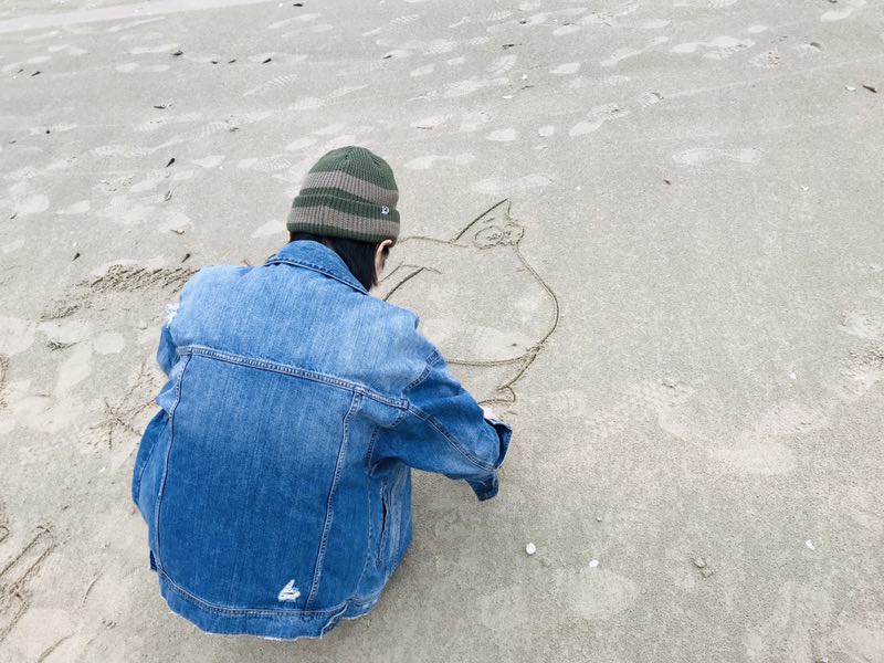嗯,怀揣着一个画家的梦想,用石头做画笔,沙滩为画纸,以大海为背景,做一副充满自由思想的.......画!