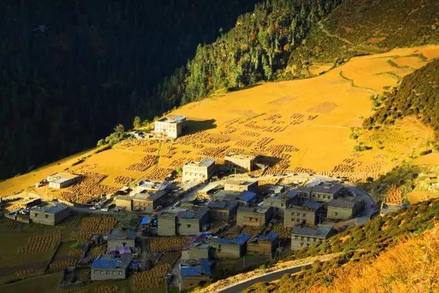 稻城,最美的就是秋天,一路走在这色彩斑斓的画面中,人仿佛也净化不少。秋天的亚丁村,也被丰收的喜悦包围,白色的民居散落在巨大的金黄色地摊上,视觉盛宴让你浏览往返。