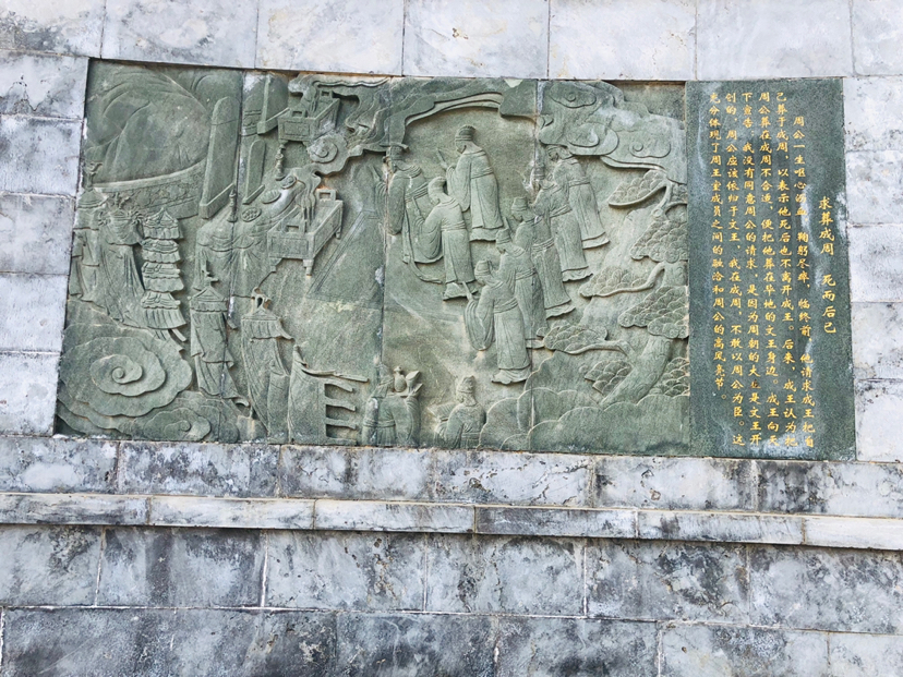 环绕墓冢是介绍周公生平功绩的浮雕文化墙。我也很佩服自己哦,一座山就我一个人,还是在墓地,还能这么坦然自若……