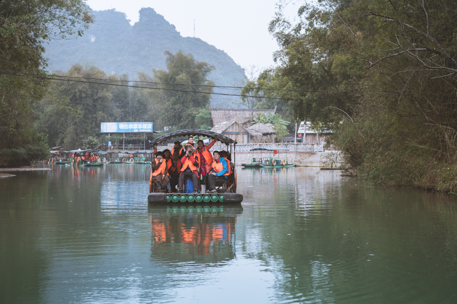 乘坐小船荡漾在明仕河上,向导小妹给我们哼唱起了当地民谣。