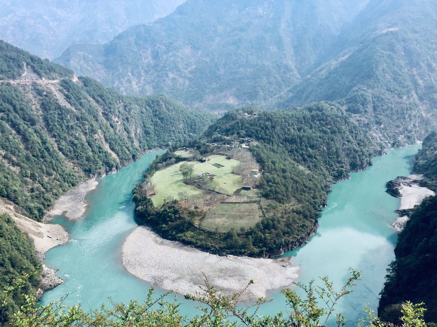 第四天,从贡山县到丙中洛 也就65公里的路程,出了贡山县不远,路况就很好了,用了两小时就到了丙中洛村,我们首先来到了著名的桃花岛,桃花岛是个三面环水的半岛。因岛上桃花甚多和当地人每年都过桃花节,故人称“桃花岛”。