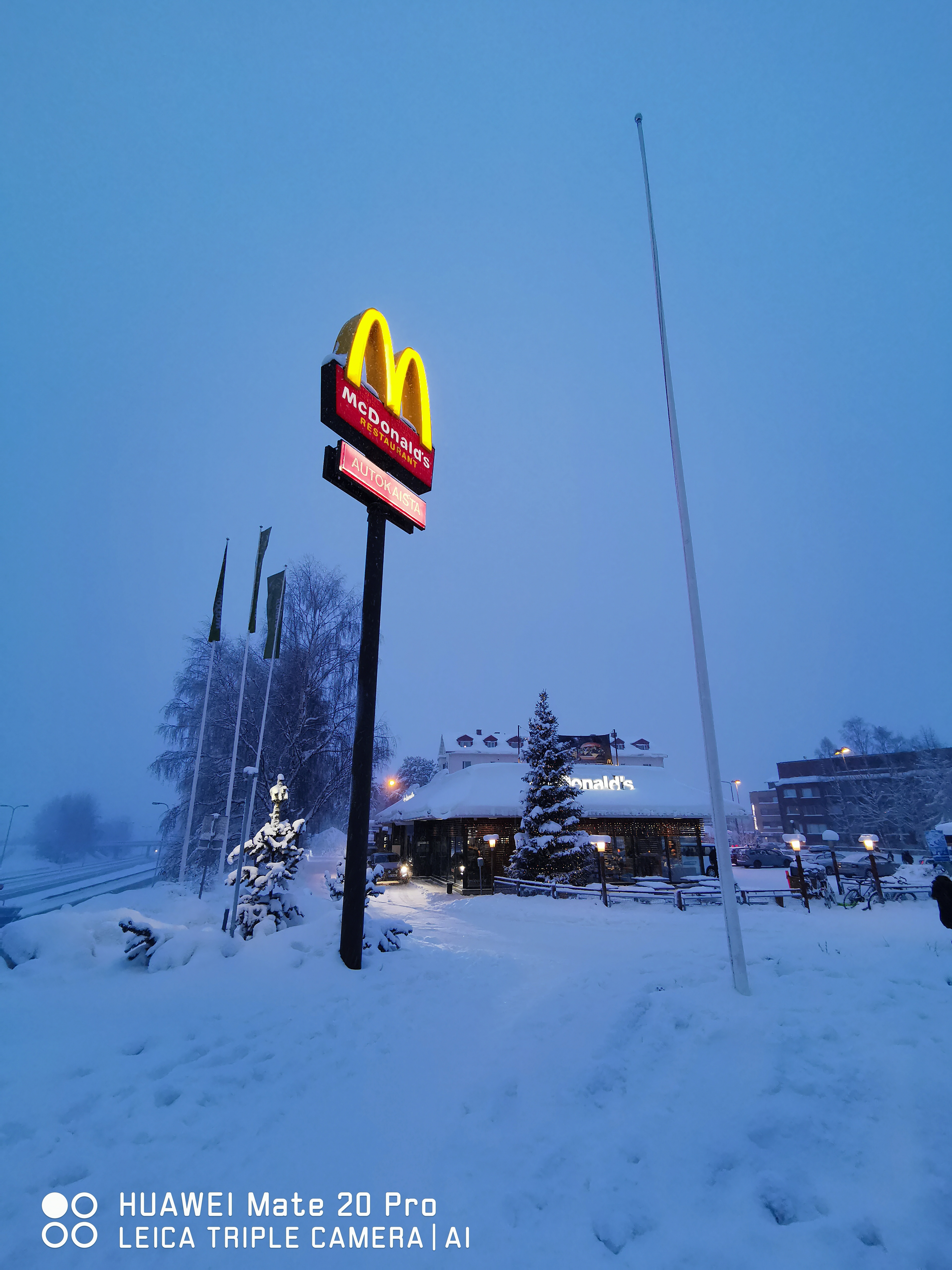 晚上趁着其他人用餐,打卡冰天雪地金拱门,发个地位,假装自己到了世界最北的麦当劳。
