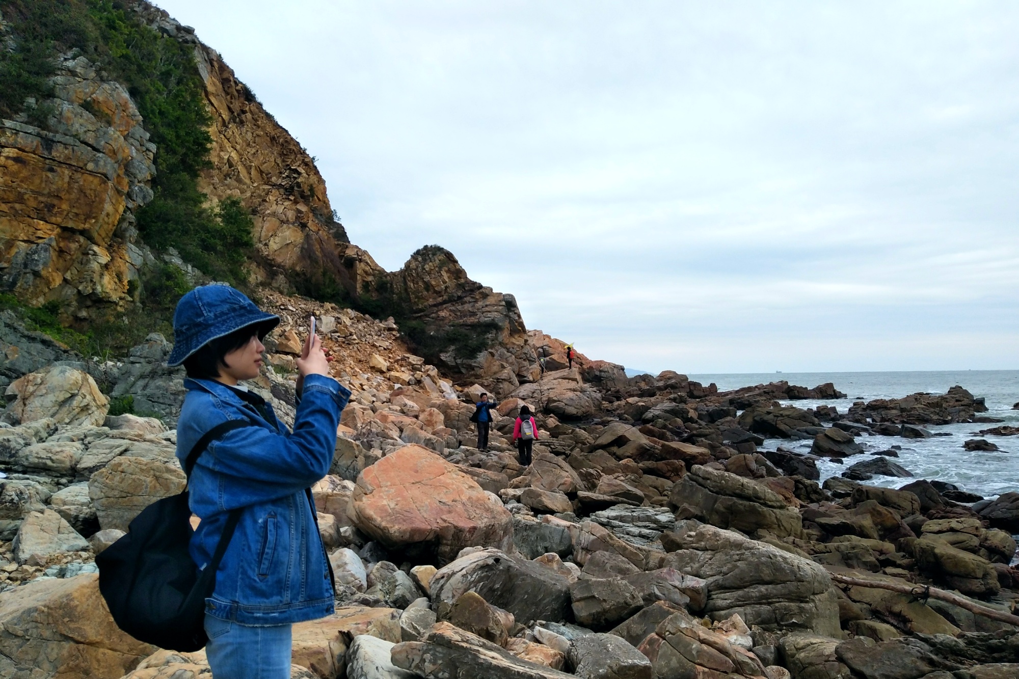 这条线路会经过4个沙滩,翻越两个礁石区,最终到达狮子岛的沙滩。十二月的广东刚刚进入冬季,气温渐渐开始微凉,这次出行前查看天气预报,预计是要下雨。不过这次运气不错,老天爷还是挺给力的,全程走完雨也没有下下来。