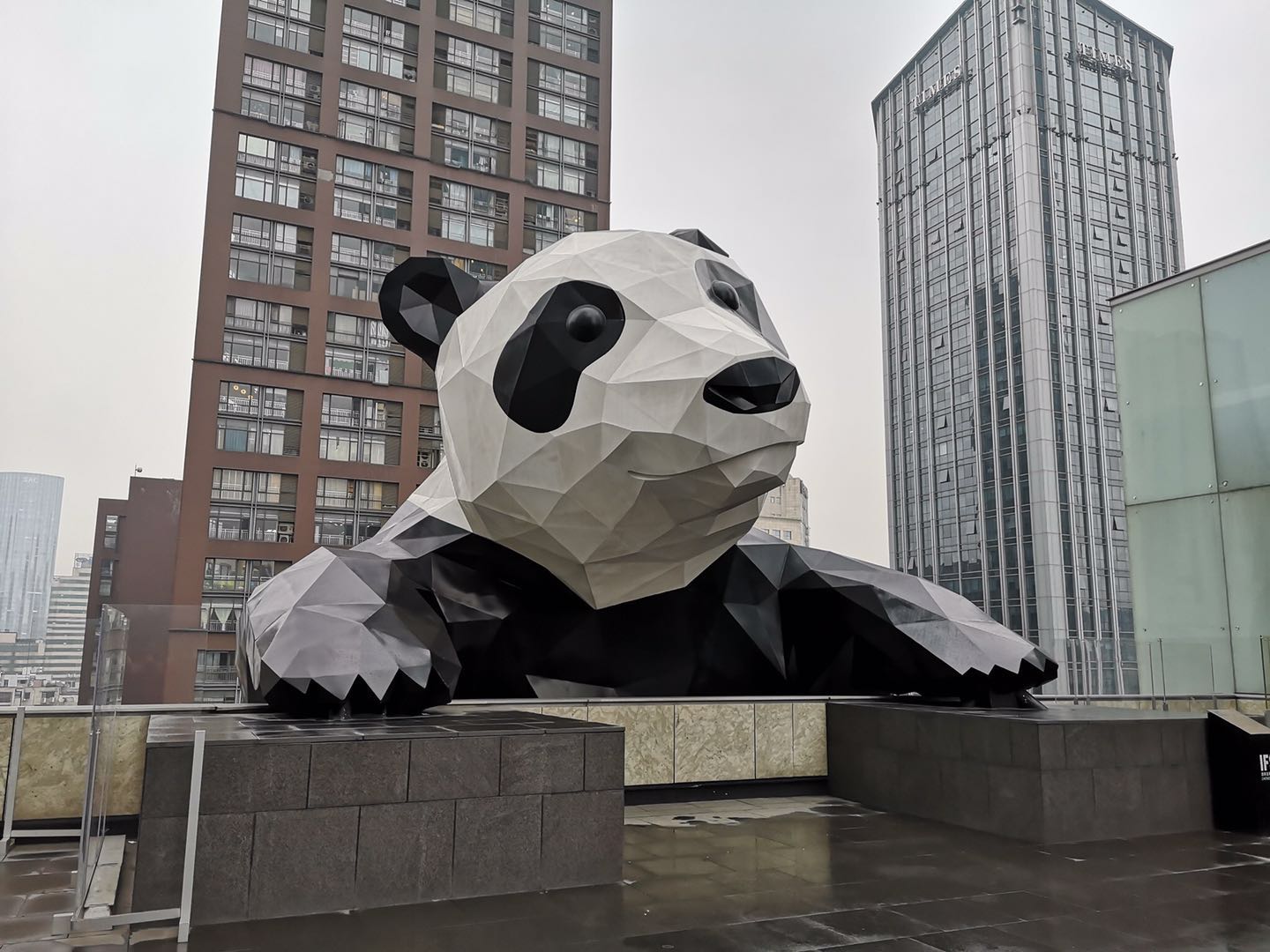 天下熙熙皆为利来、天下攘攘皆为利往,而作为成都商业中心的春熙路也就是因此而得名,但在商业金融中心却有着一座憨态可掬的熊猫爬墙雕塑。