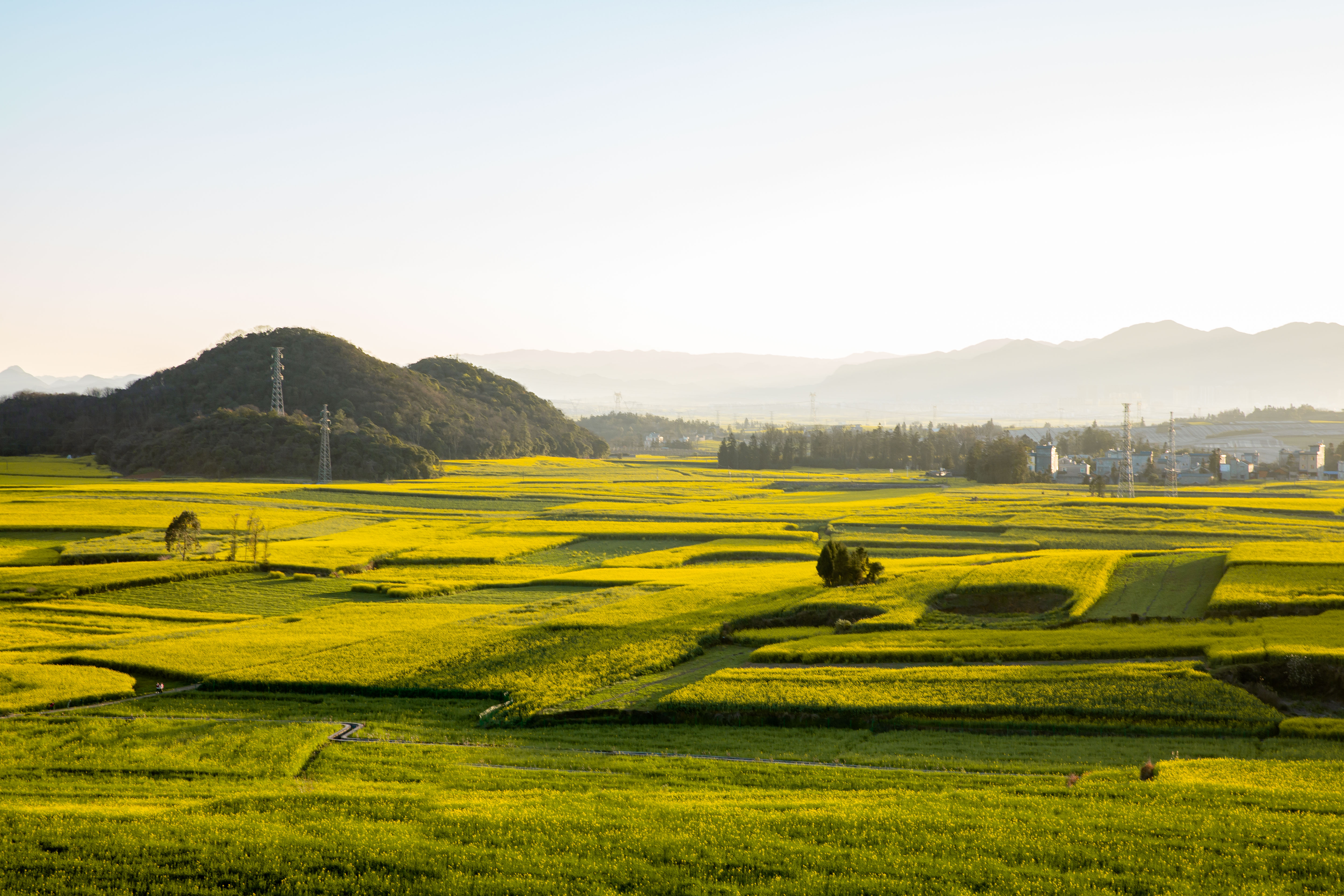 拍完落霞沟的日出之后我们便坐上大巴,直接奔赴罗平,四百多公里的路程,将近开了八个小时的,春节期间的堵可不是开玩笑的,索性的是我们赶上了日落的最好时光,各位游侠们顾不上收拾自己的行李,下了大巴,直接拿着脚架就赶往油菜花花海,拍摄日落。