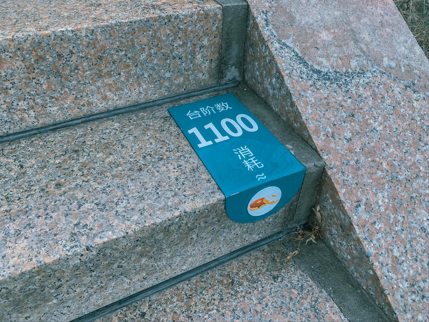 爬着台阶竟然发现每到一定的台阶数就悉心标好了卡路里的消耗量。