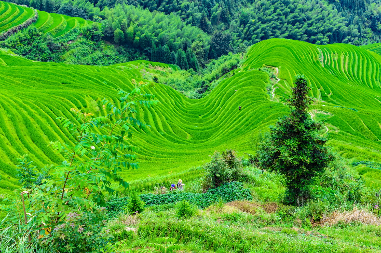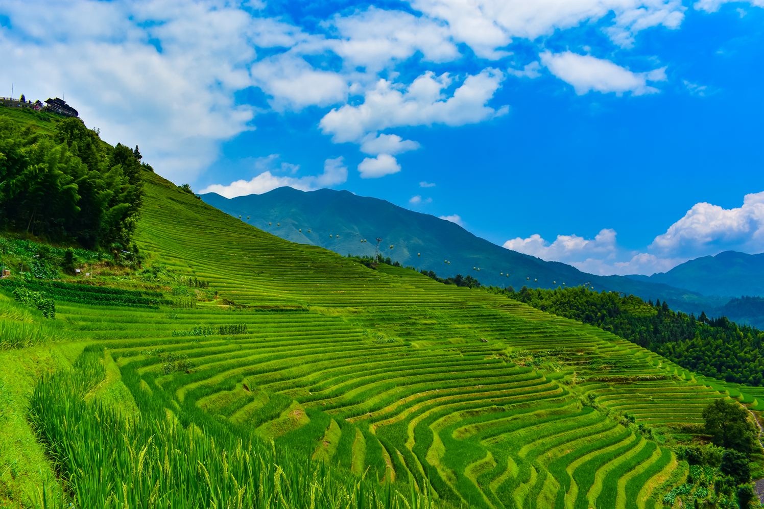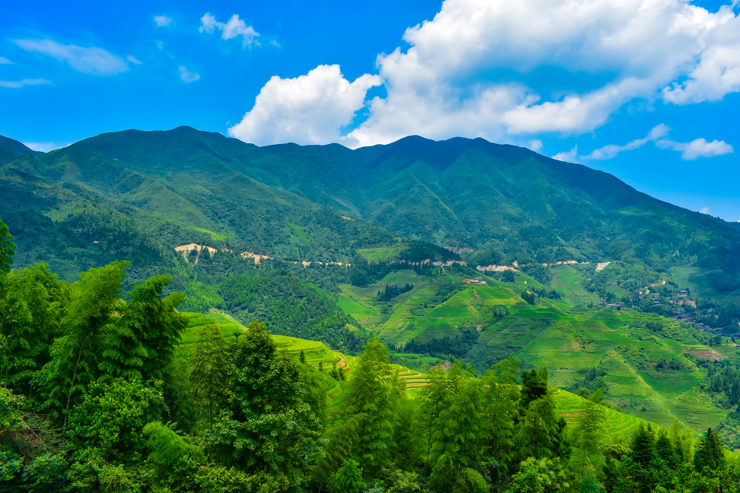 生活在 广西 桂林 龙脊的壮族、瑶族人民,祖祖辈辈,助耕开田,向高山要粮。从水流湍急的溪谷到云雾缭绕的峰峦,从森 林边 缘到悬崖峭壁,凡是能开垦的地方,都开凿了梯田。经历了一千多年的努力, 龙脊梯田 日臻完美,同时变成了 中国 大地最美丽的风景之一。