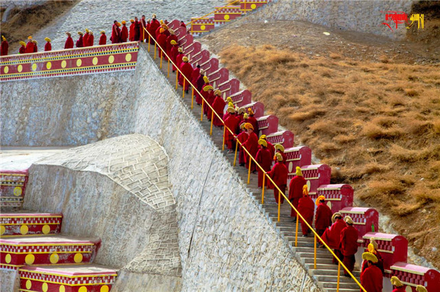 晒佛:晒佛活动对于藏族来说也是一个盛大的节日,人们都会穿着节日盛装出席,在翘首企盼中,大佛被众僧抬出来,大家争相献哈达,村里的数百号男青年们一起参与,他们抬着大佛,前往瞻佛台。五彩缤纷,色彩艳丽的堆绣大佛像,在众僧念经声中徐徐展开。