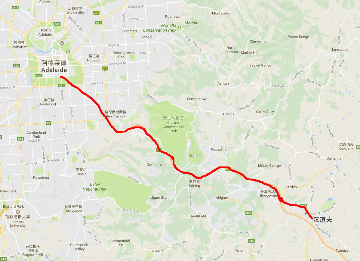 阿德莱德市区到汉多夫德国小镇距离约为30公里,自驾20多分钟可到达!