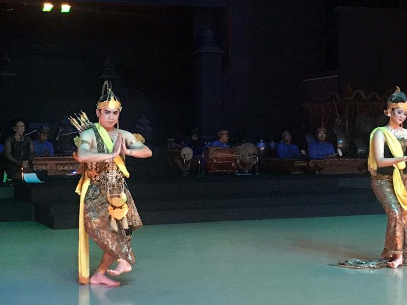剧团就在普兰班南的背面,可以看到夜灯点燃的普兰班南,剧院出乎想象的专业和精致,圆形的剧场周边是观众席,当中就是舞台,舞台最后面是乐队,承担着所有的伴奏和清唱过场,看了演出之后才信服日惹是爪哇的文化中心。