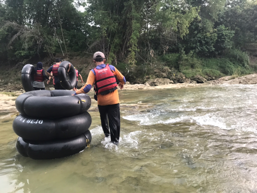Pudil cave 我们选的是两个比较大众的项目,一个是坐在轮胎上穿越地下暗河,另一个是背着轮胎走过乡间小路去漂流。