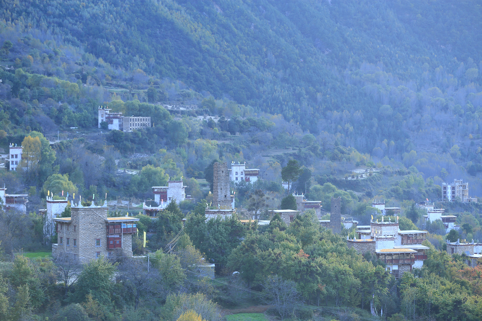 拍完人像,当然是要拍景色了,今日光线正好,我们走到一个高处,拍摄整个藏寨的全景。