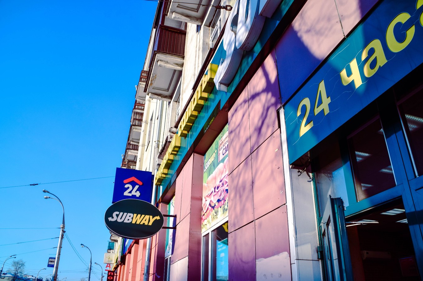因为没有零钱,没法儿坐公交车去 喀山 大教堂那边,所以天真的就靠google map就走着去了,事实证明,在零下几十度的街头走着是超不过十分钟的,热量消耗特别快,我们就赶紧选了“安全牌”的Subway