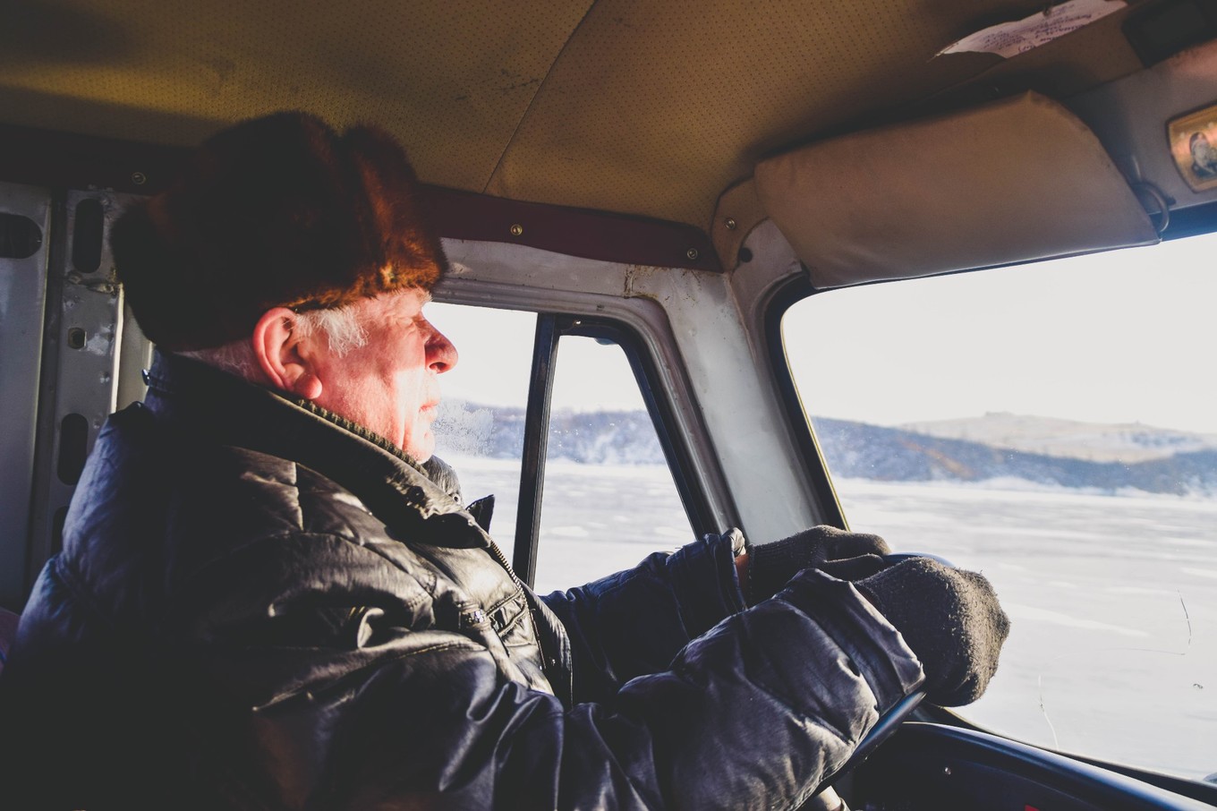 终于踏上 贝加尔湖 的冰面,此时被司机小哥哥的回眸心空了,装满小星星的蓝眸,哇哦!