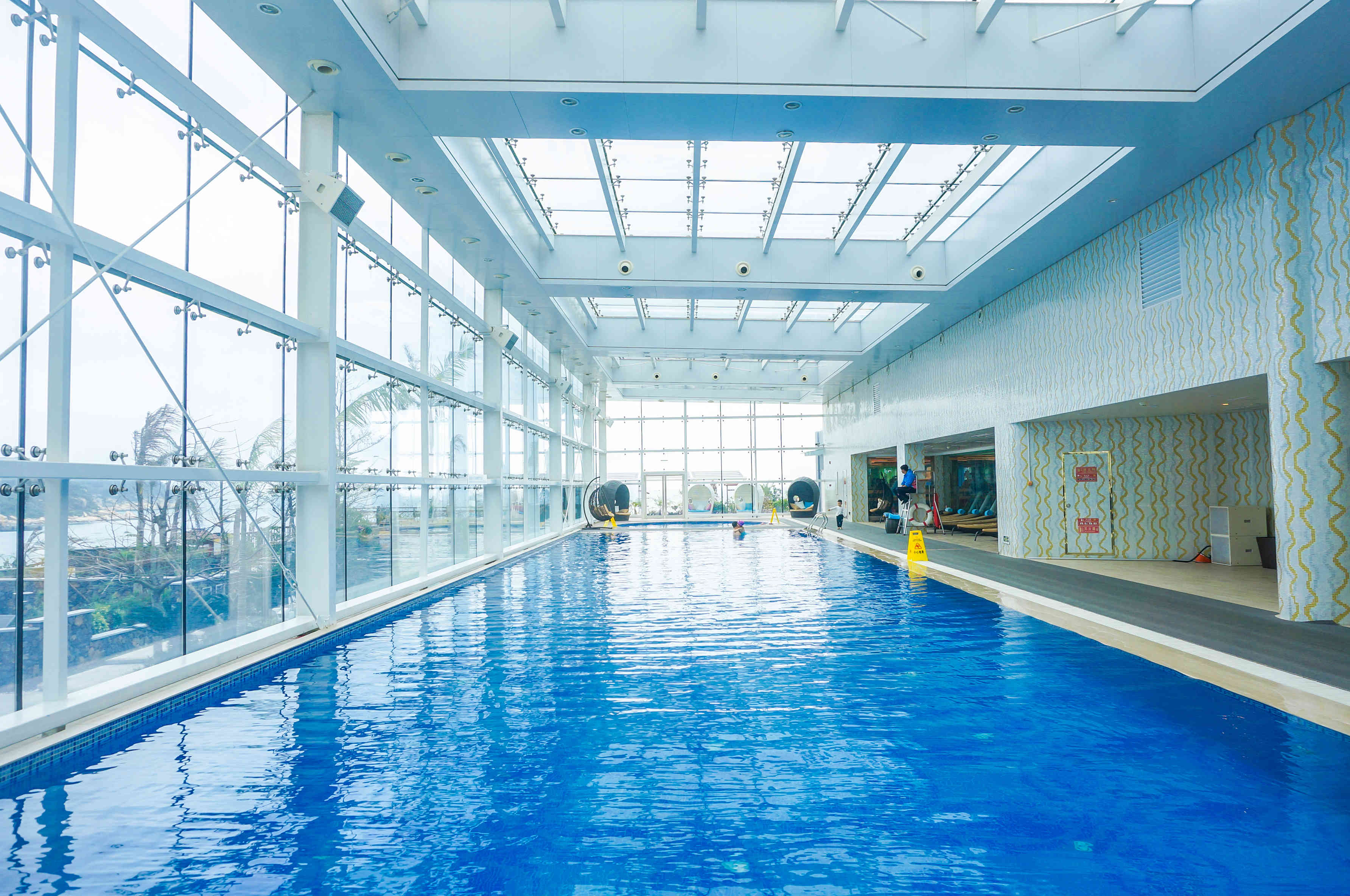 一个人走着走着,来到了一楼的室内的恒温游泳池,全透明的设计风格让室内游泳池显得很宽敞一点儿也不封闭,即使在冬日,也可以感受到格力带来的夏日的乐趣。