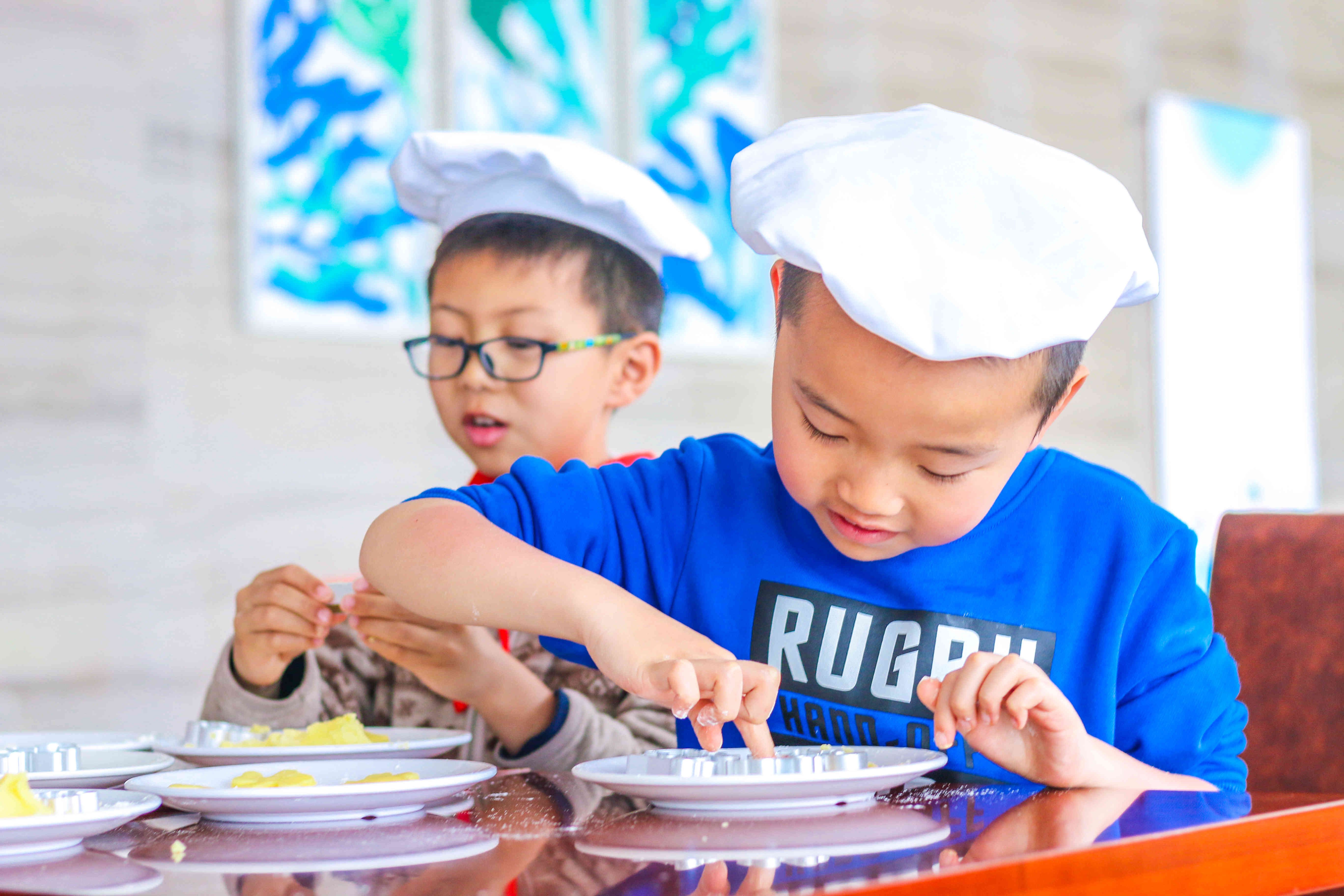 两位小男孩很认真地在捏造自己的曲奇饼干,小巧手很快就捏了好几盘饼干出来。