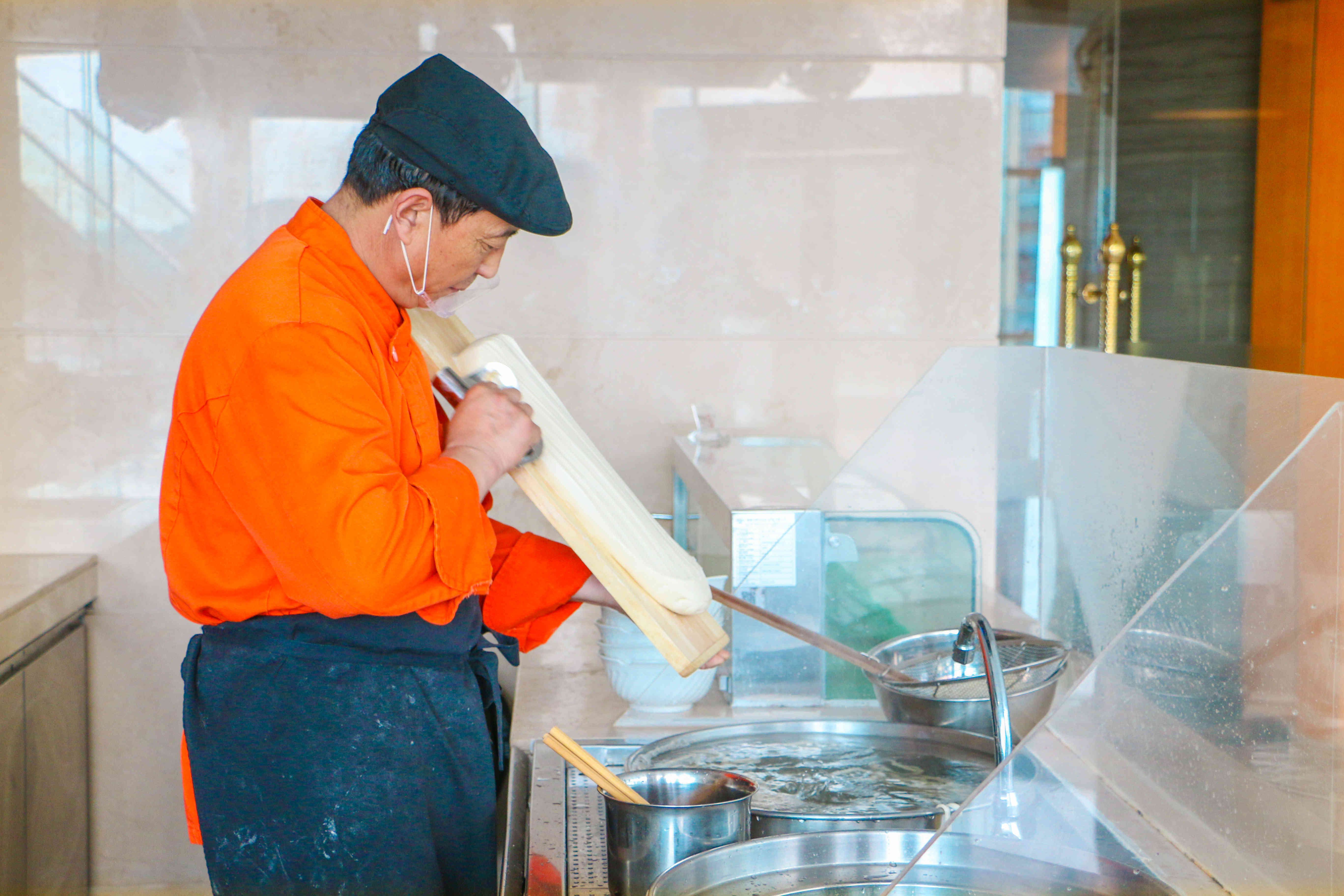 在酒店三楼海星坊有一家北方面馆,师傅来自甘肃,大多数甘肃人都是“面食派”,甘肃人的一天也是由一碗拉面开始的,于是一定要尝试下甘肃师傅的手艺,师傅用手工擀做,光是看着师傅手打的面很有劲道,喜欢吃辣的朋友再配上油泼辣子,在用餐区的中间有自助的柠檬水和红茶提供,可以尽情地享受一顿美味。