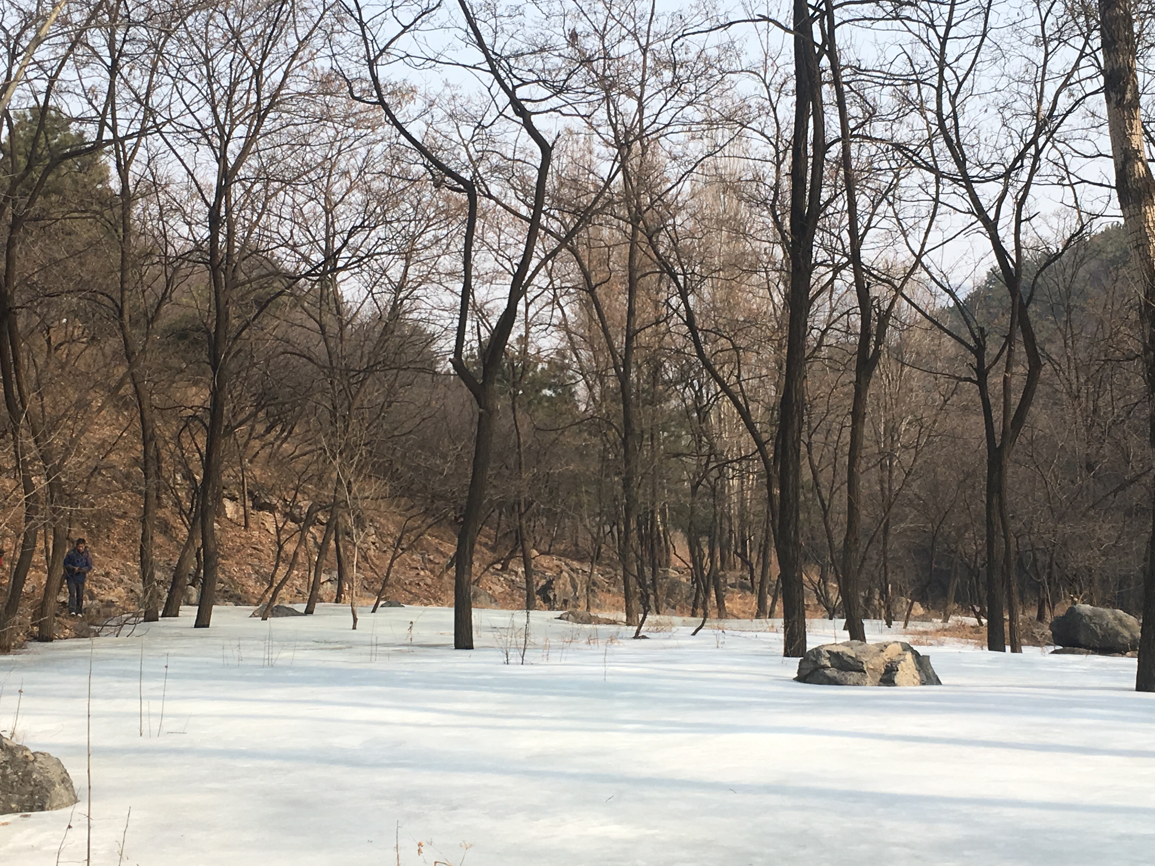 进山后大概十分钟,就已经能看到冰面啦,延庆本来就比市区内冷,接连下了两三场的大雪所以整个河面都是结冰状态,眼前的景象一下子就激发了大家的兴奋点,立马上冰河开始凹造型了,这里的冰可以说结的非常厚啦完全不用担心掉下去哦!